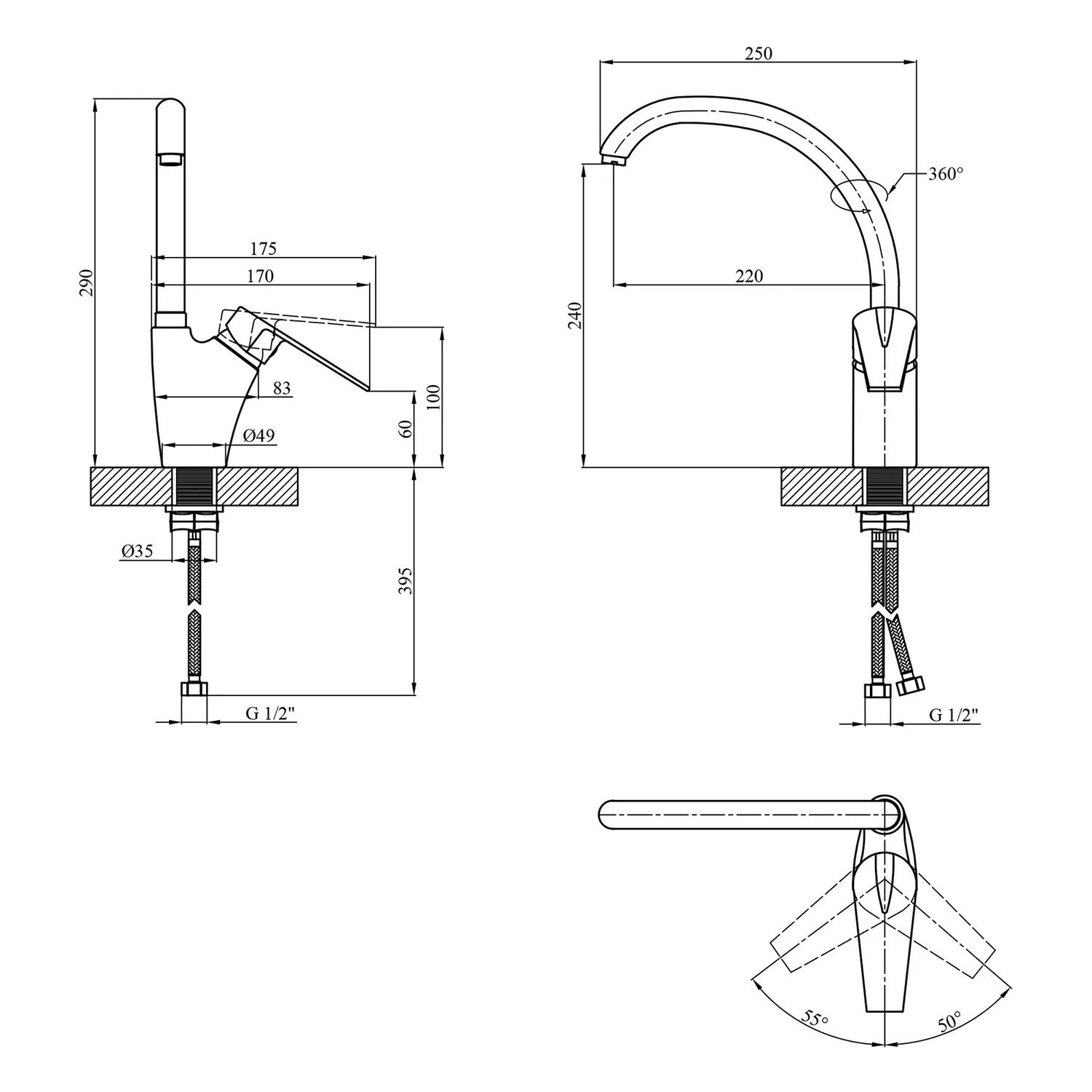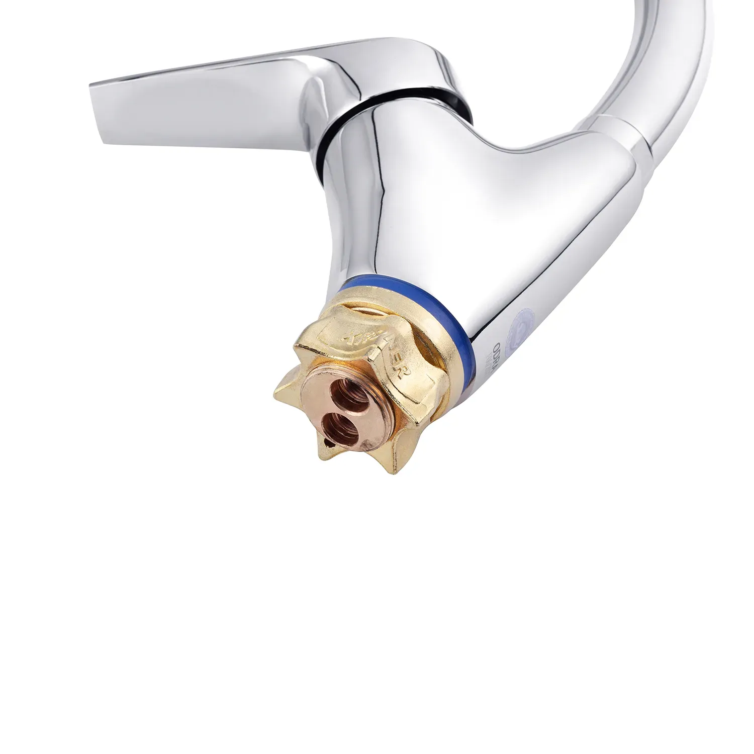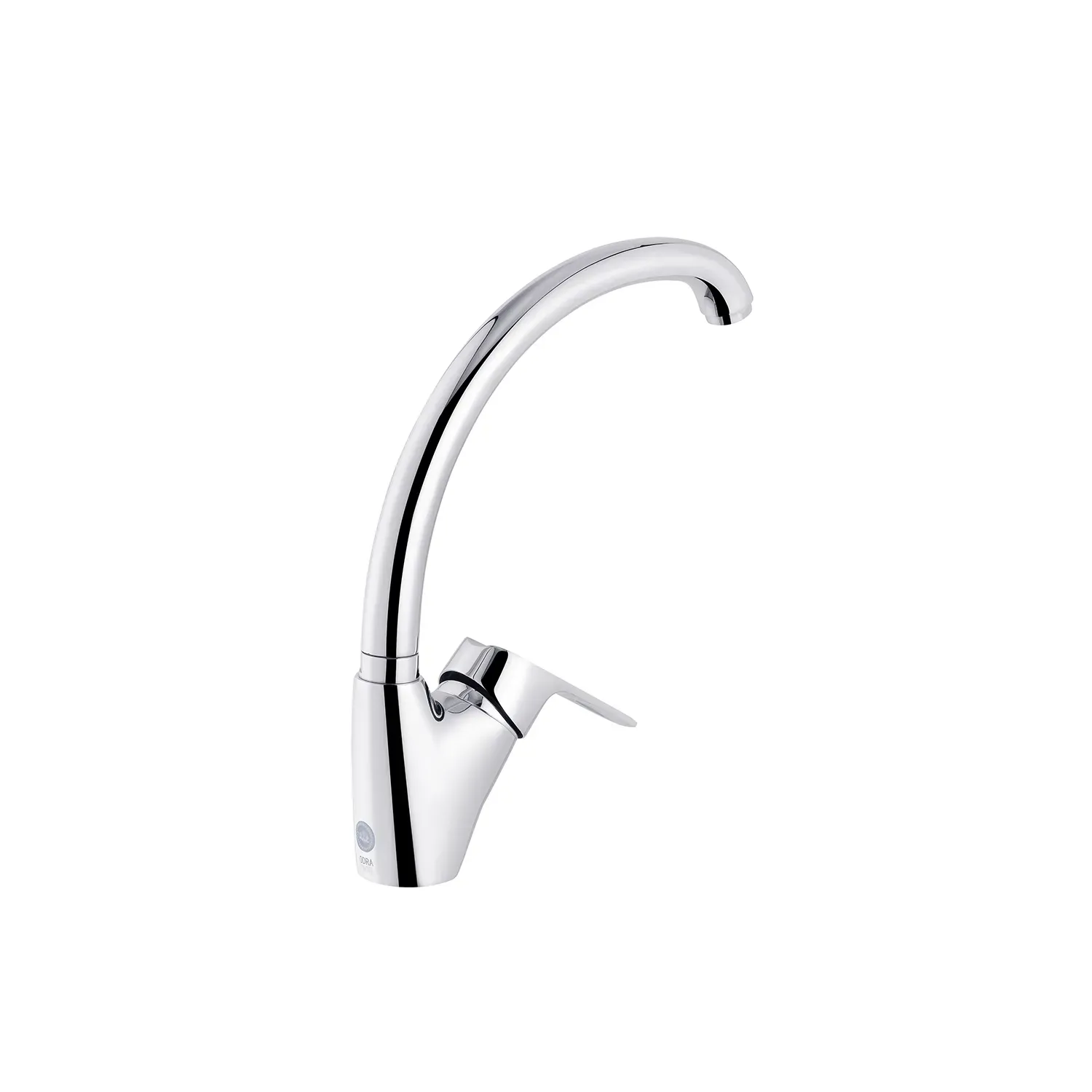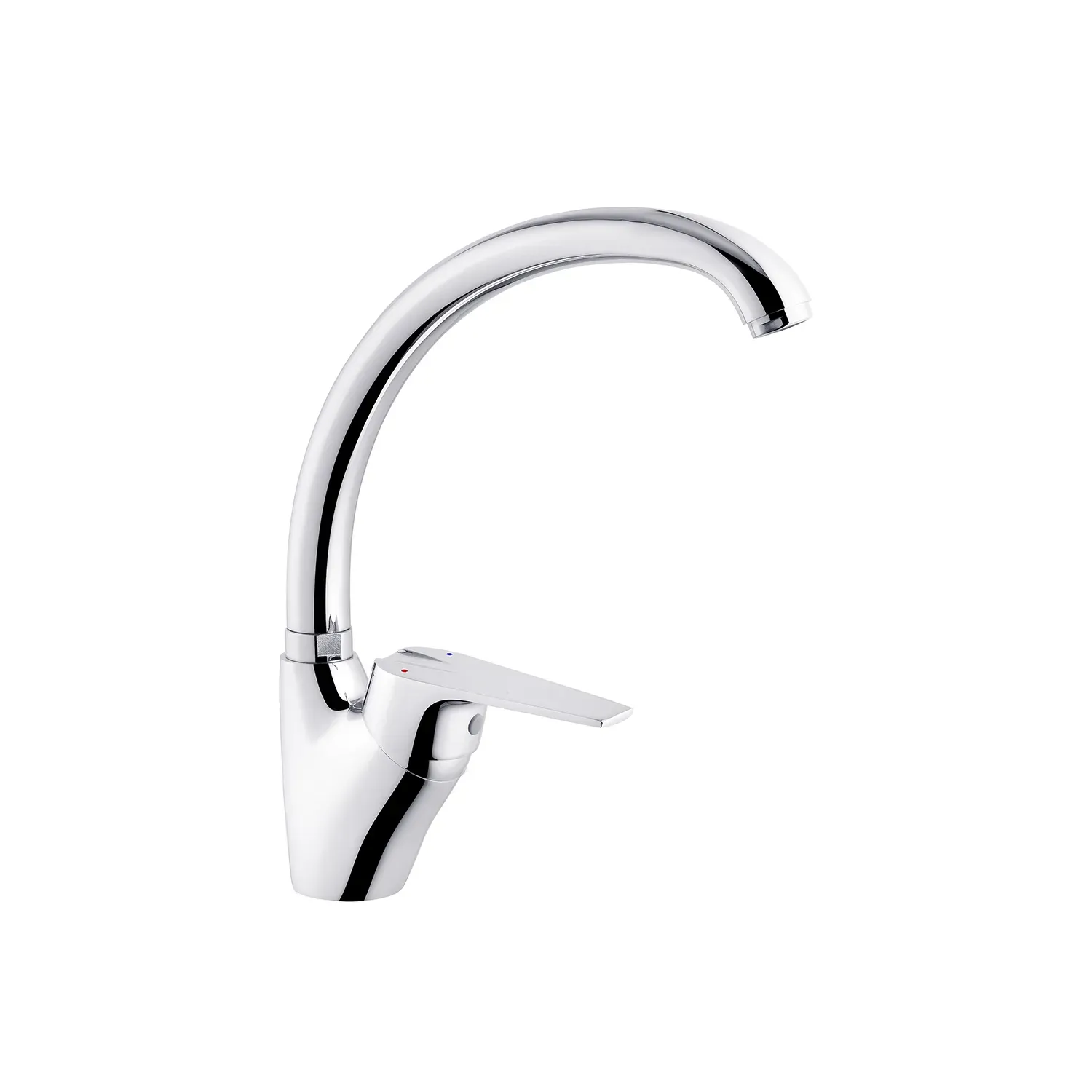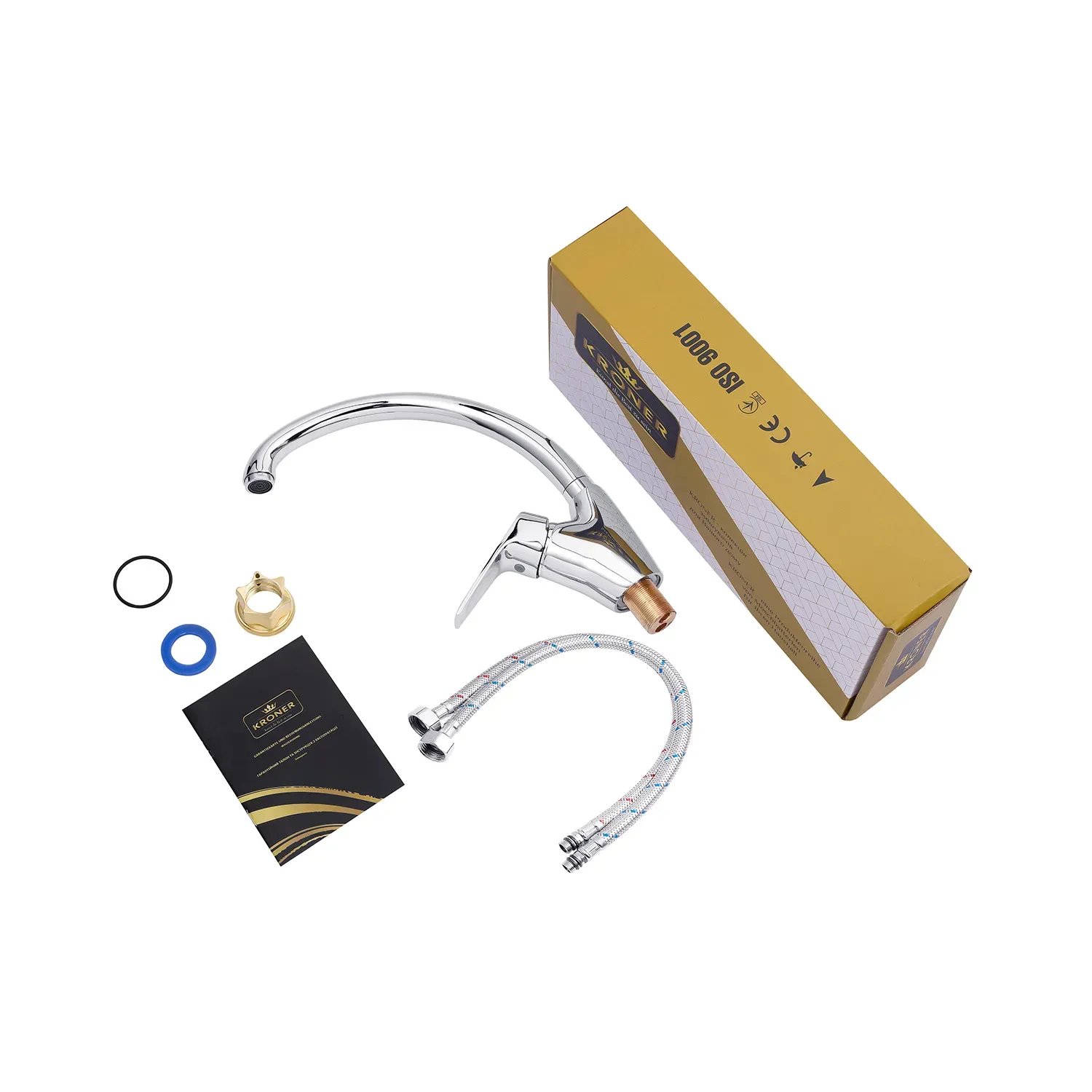 Змішувач для кухні Kroner KRM Odra - C034 - ідеальний вибір для вашої кухні. Виготовлений з високоякісного силуміну, він гарантує міцність та довговічність. Має привабливий глянцевий хромований колір, що додає йому елегантності. Змішувач оснащений картриджним механізмом змішування, що дозволяє зручно регулювати температуру води. Його унікальна С-подібна форма виливу забезпечує зручність під час наповнення посуду або миття продуктів. Насолоджуйтесь функціональністю і стилем змішувача Kroner.