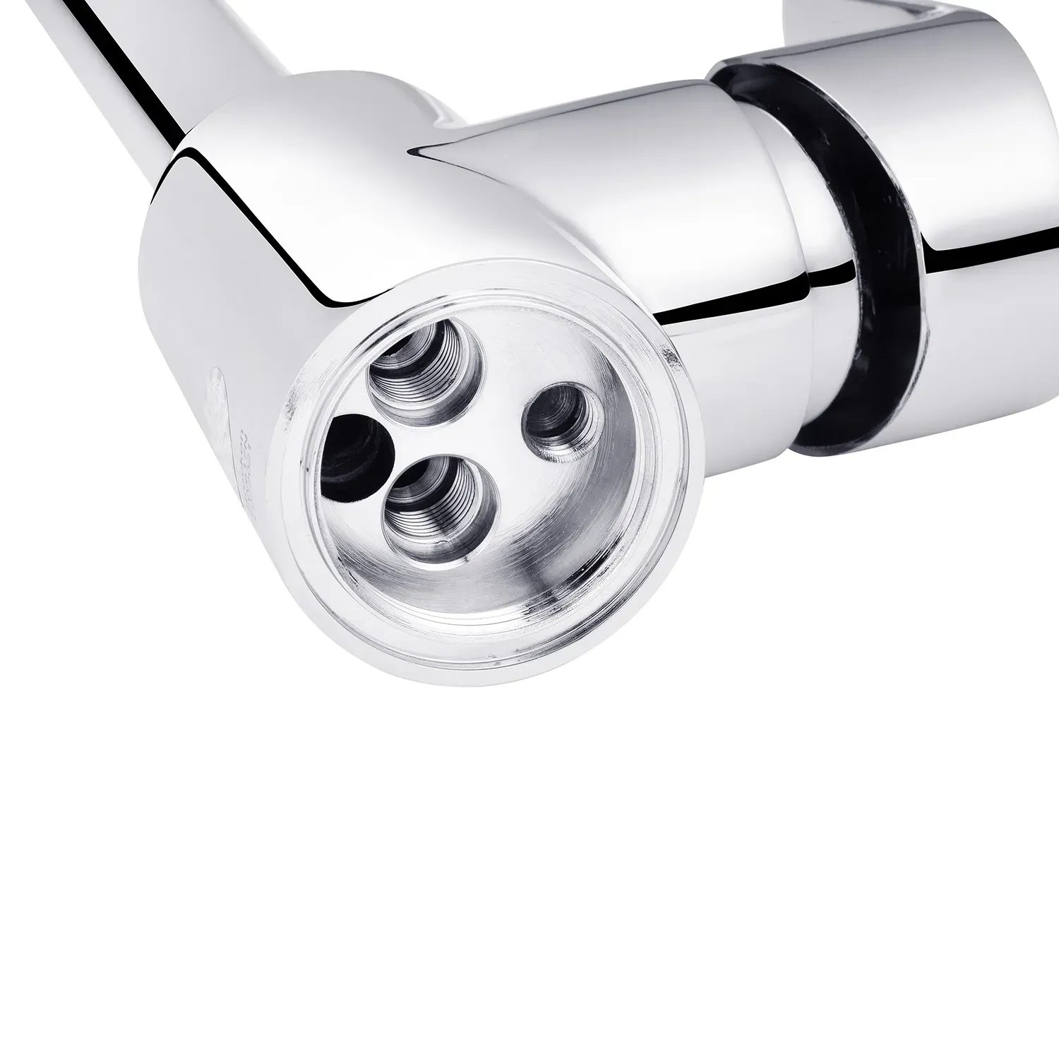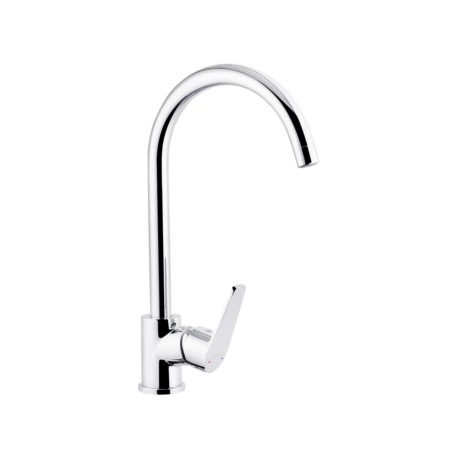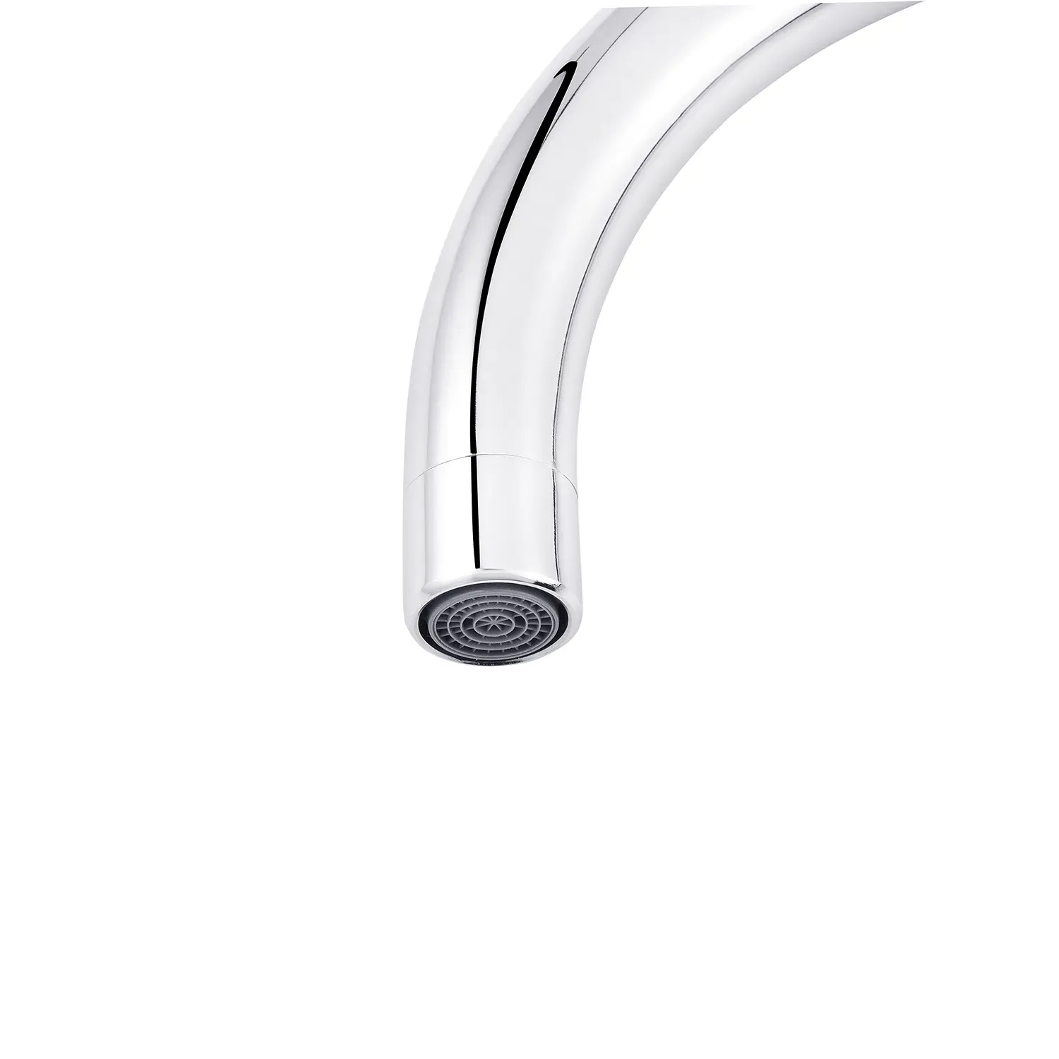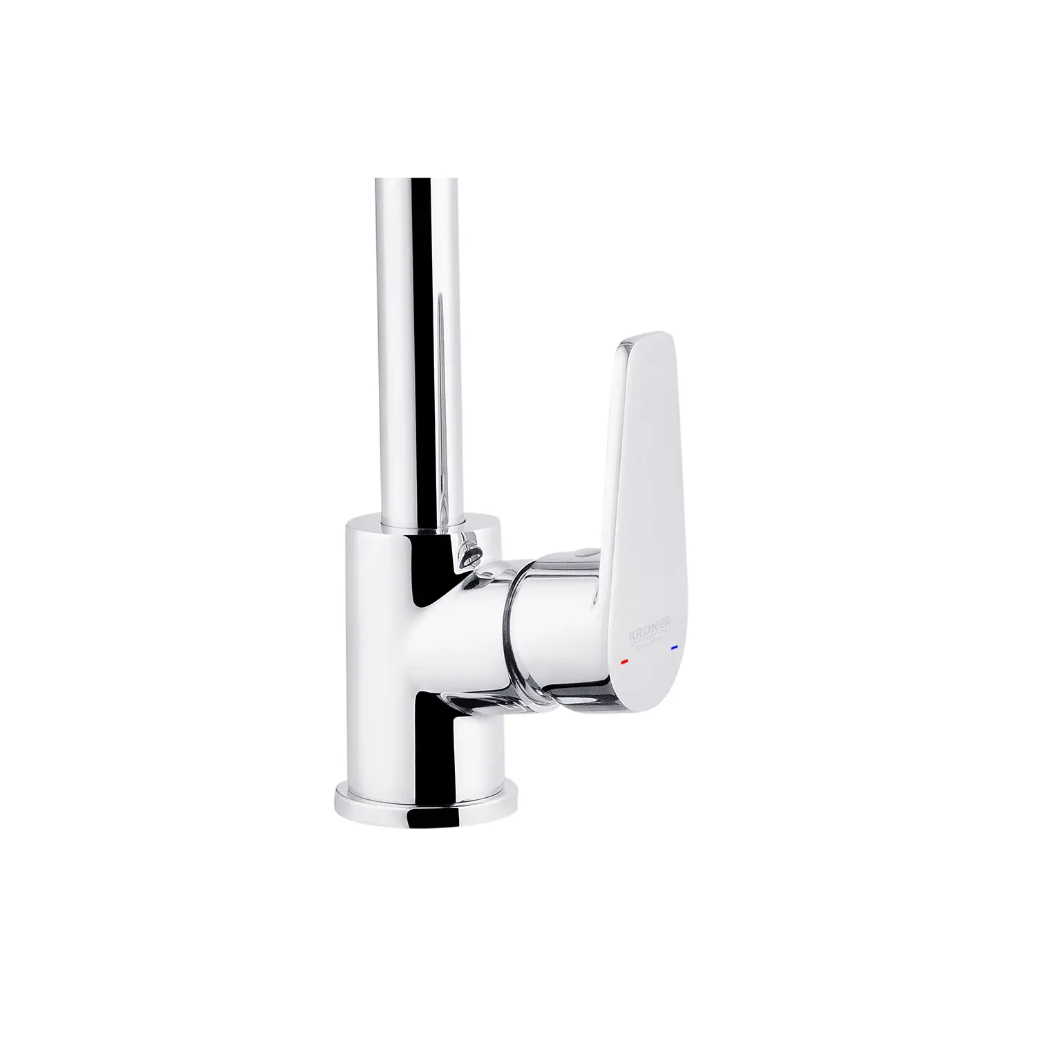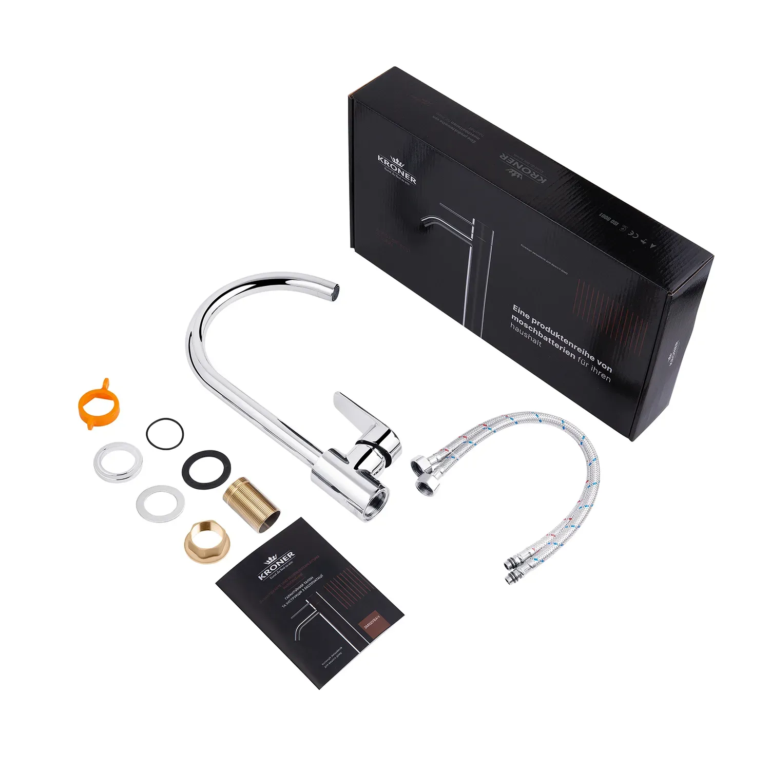 Змішувач для кухні Kroner KRP Brocken - C030 - ідеальний вибір для вашої кухні. Виготовлений з високоякісної латуні, він гарантує міцність та довговічність. Має привабливий глянцевий хромований колір, що додає йому елегантності. Змішувач оснащений картриджним механізмом змішування, що дозволяє зручно регулювати температуру води. Його унікальна U-подібна форма виливу забезпечує зручність під час наповнення посуду або миття продуктів. Насолоджуйтесь функціональністю і стилем змішувача Kroner.