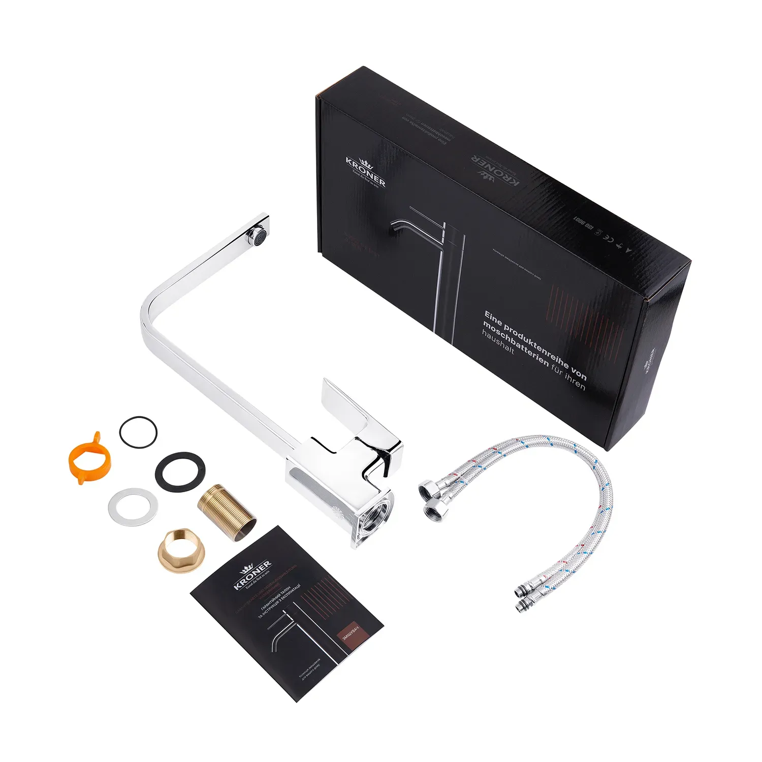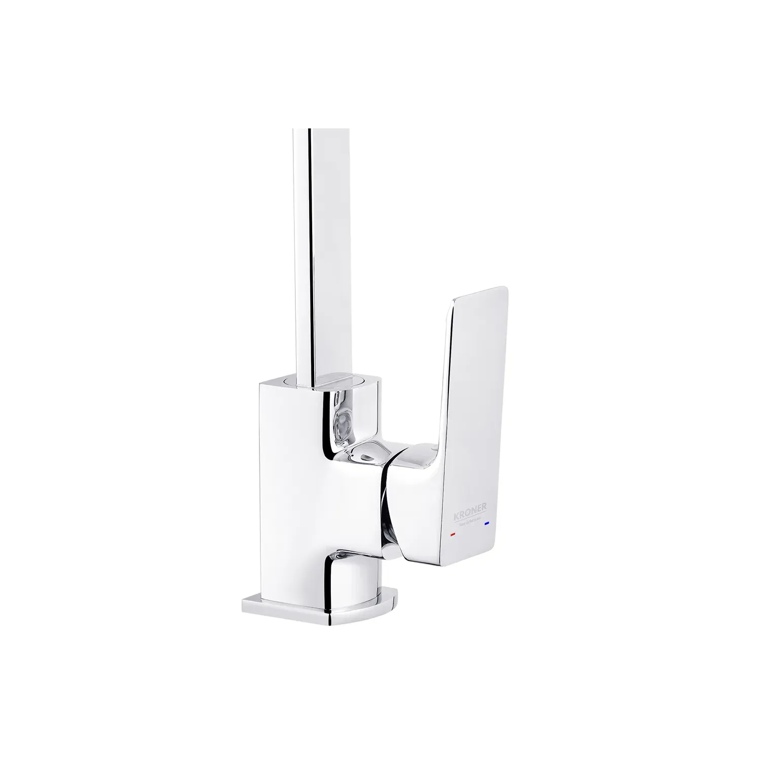 Змішувач для кухні Kroner KRP Harz - C030 - ідеальний вибір для вашої кухні. Виготовлений з високоякісної латуні, він гарантує міцність та довговічність. Має привабливий глянцевий хромований колір, що додає йому елегантності. Змішувач оснащений картриджним механізмом змішування, що дозволяє зручно регулювати температуру води. Його унікальна Г-подібна форма виливу забезпечує зручність під час наповнення посуду або миття продуктів. Насолоджуйтесь функціональністю і стилем змішувача Kroner.