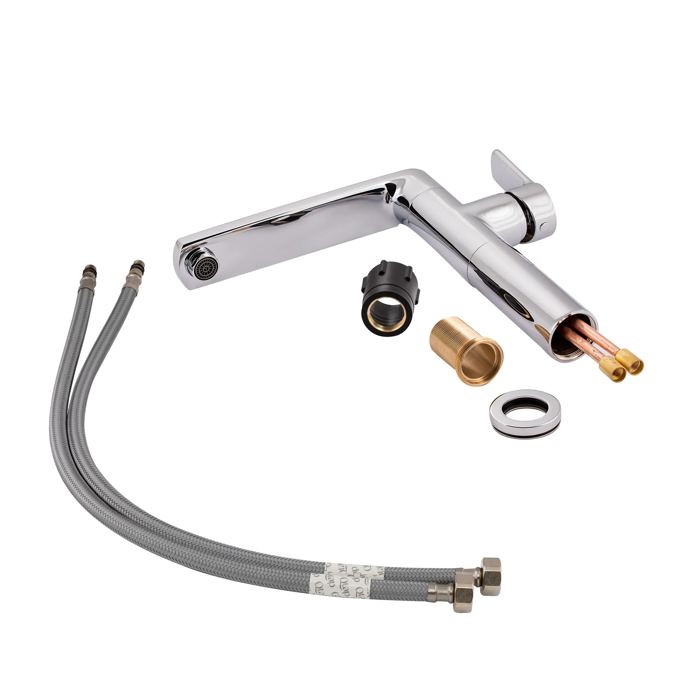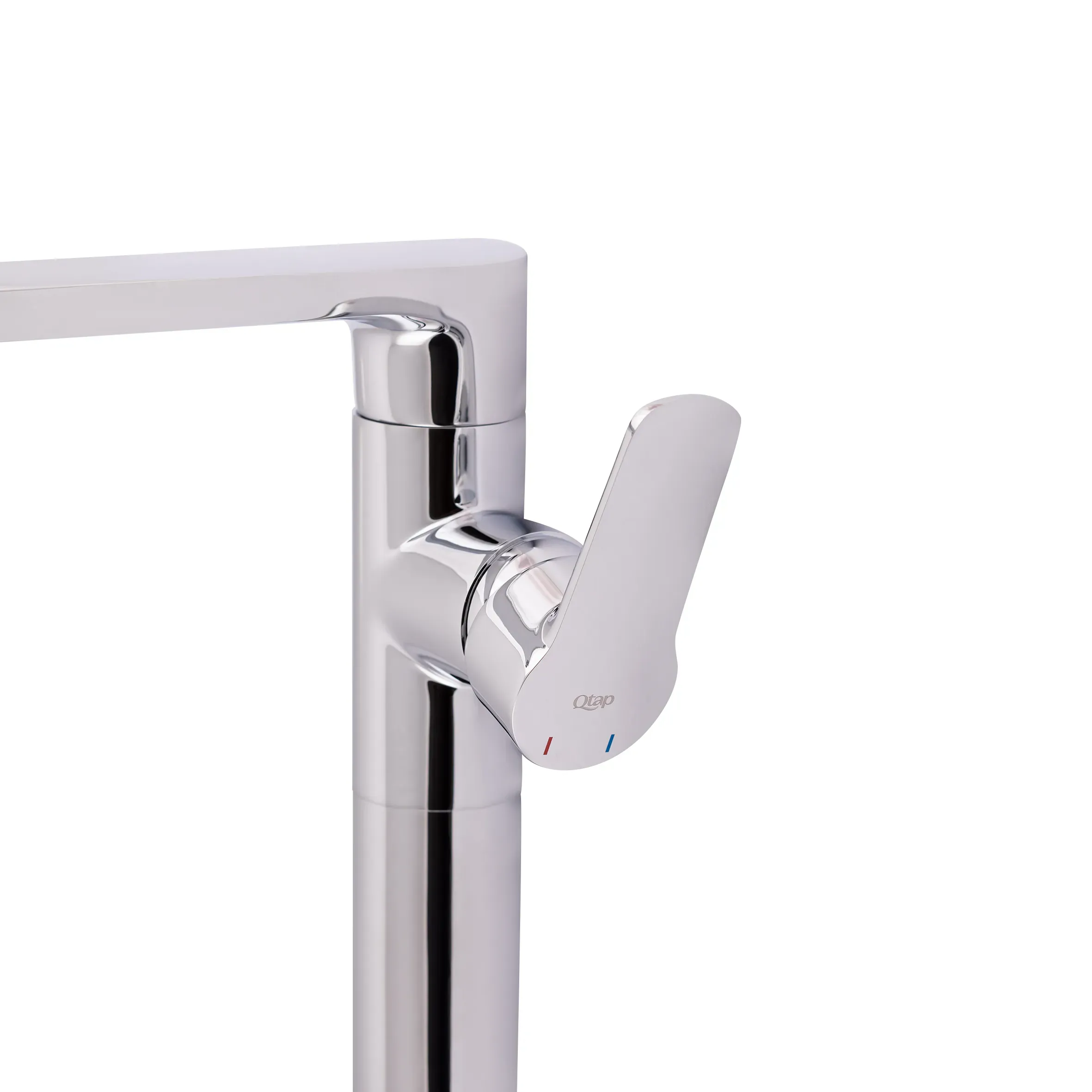Змішувач для кухні Q-tap Eco CRM 007. Високий змішувач еліт класу. Литий латунний корпус. Носик плоский поворотний. Ручка джойстик, розташована збоку змішувача, картридж 35мм. Кріплення (гайка).