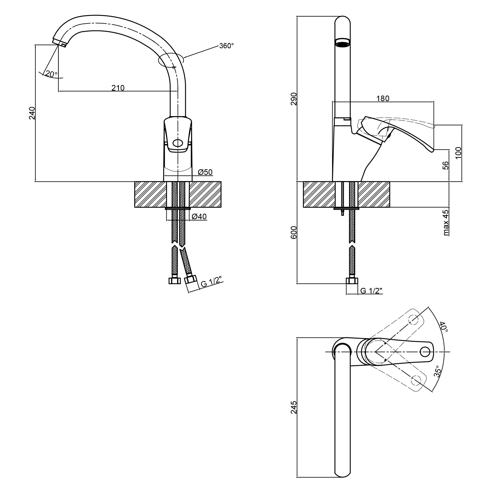 Змішувач для кухні Q-tap Mars СRM 007. Латунний змішувач хорошої якості. Литий корпус, покриття хром. Носик високий, поворотний. Ручка джойстик, картридж 40мм. Кріплення (шпилька). Шланги 40см.