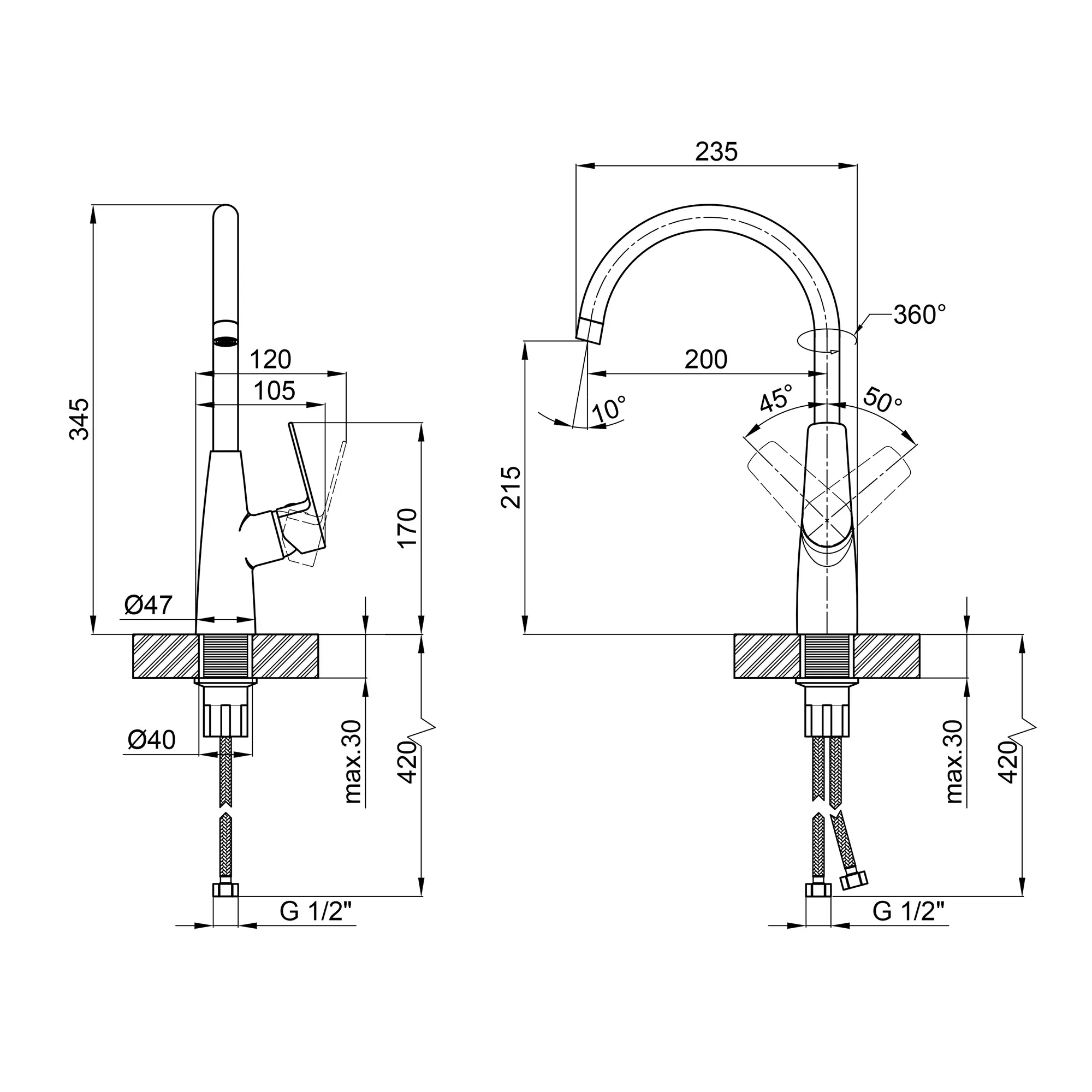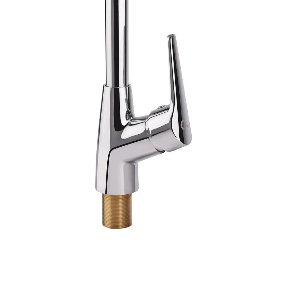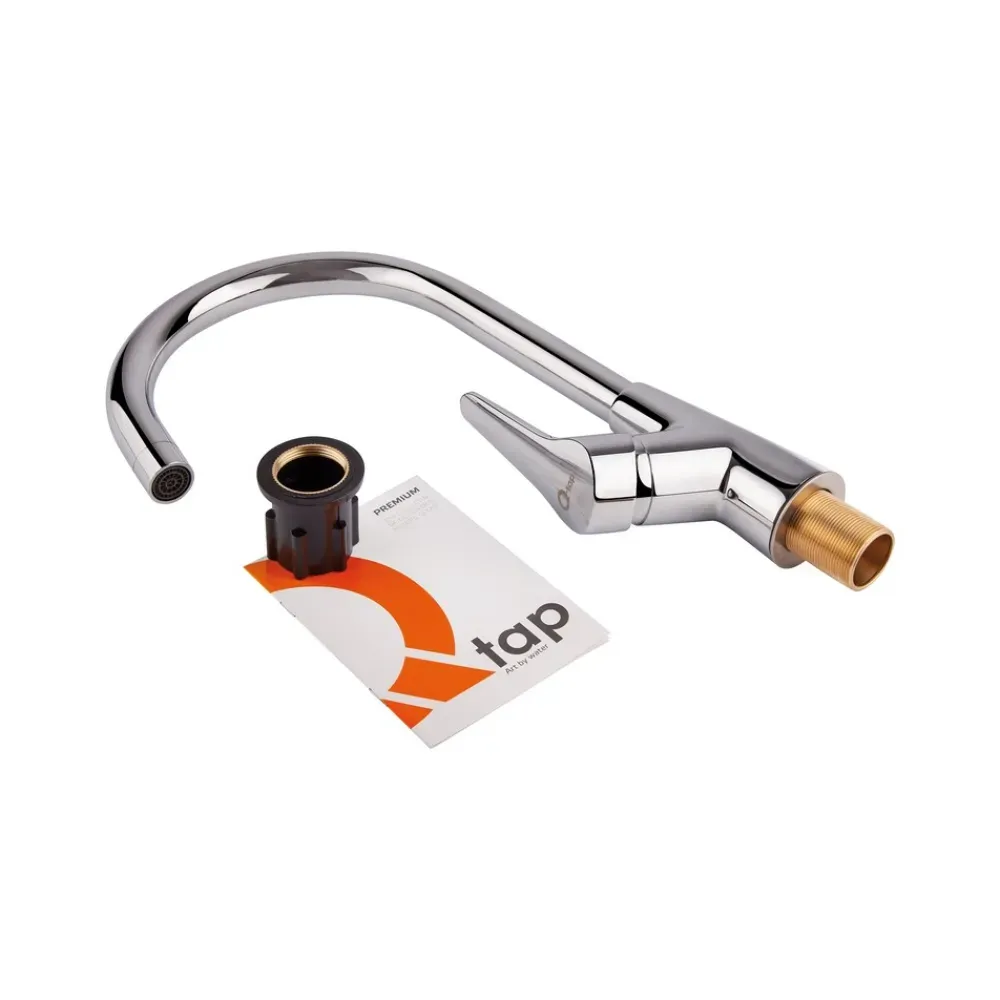 Змішувач для кухні Q-tap Tenso CRM 007. Якісний змішувач, витончені форми. Литий латунний корпус. Покриття хром. Носик високий, поворотний, круглий. Ручка джойстик, картридж 35мм. Кріплення (гайка).