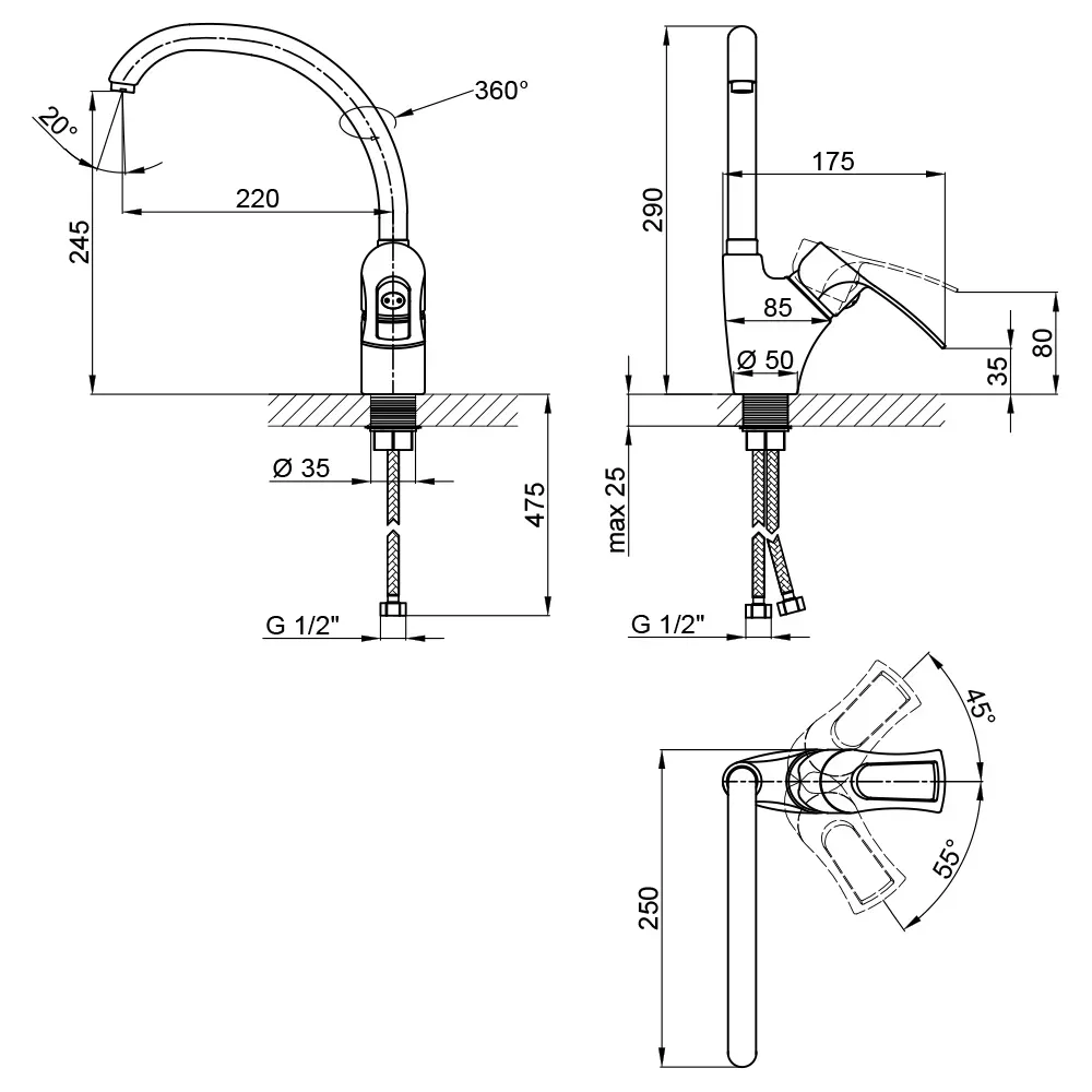 Змішувач для кухні Q-tap Hansberg 007F CRM
