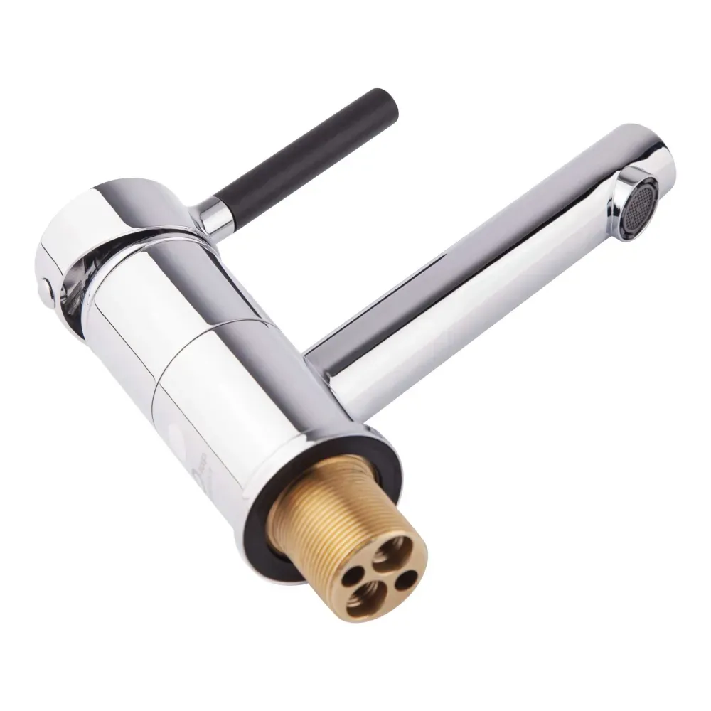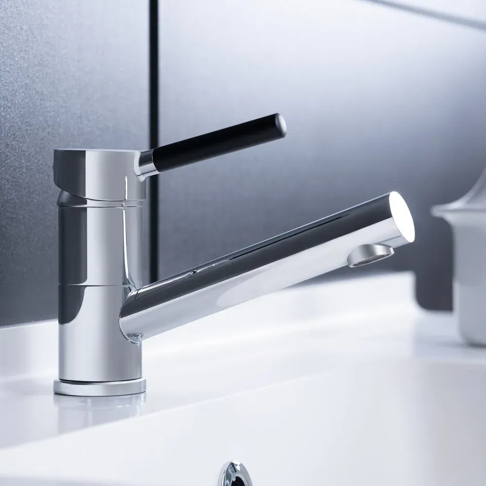 Змішувач для кухні Qtap Inspai CRM 003M виготовлений з високоякісної харчової латуні, яка стійка до впливу корозії, ударів і появи тріщин. Глянсове хромоване покриття не тільки підвищує довговічність змішувача, а й надає йому привабливості. Змішувач має одноважільне управління, за допомогою якого можна відрегулювати температуру і напір холодної та гарячої води. Виконаний в сучасному стилі та стане справжньою родзинкою в інтер‘єрі кухні.