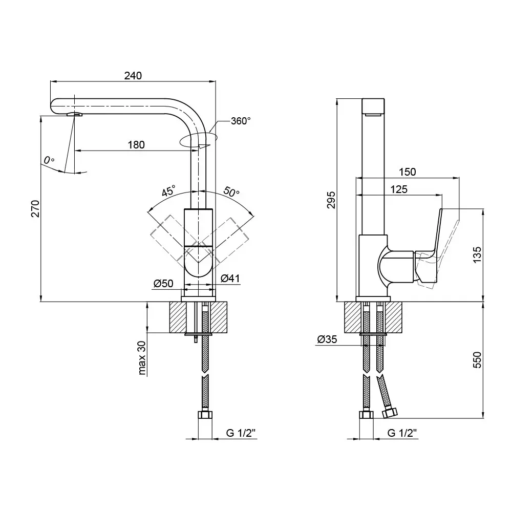 Змішувач для кухні Qtap Javornik 9014107FC виготовлено з високоякісної харчової латуні, яка стійка до впливу корозії, ударів і появи тріщин. Глянцеве хромоване покриття не тільки підвищує довговічність змішувача, а й надає йому привабливості. Змішувач має одноважільне керування, за допомогою якого можна відрегулювати температуру і напір води. Змішувач виконано в сучасному стилі, він ідеально доповнить інтер‘єр кухні.