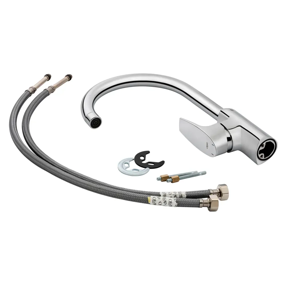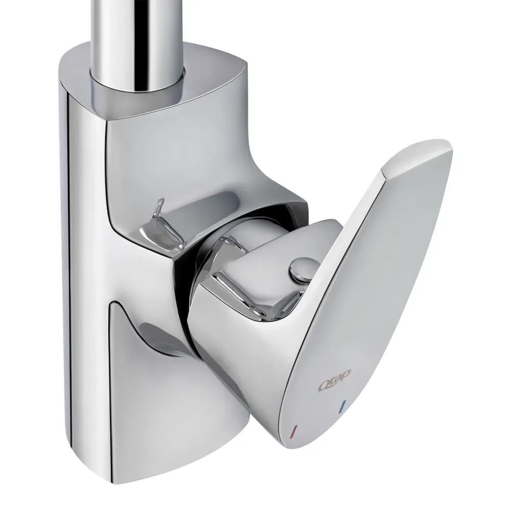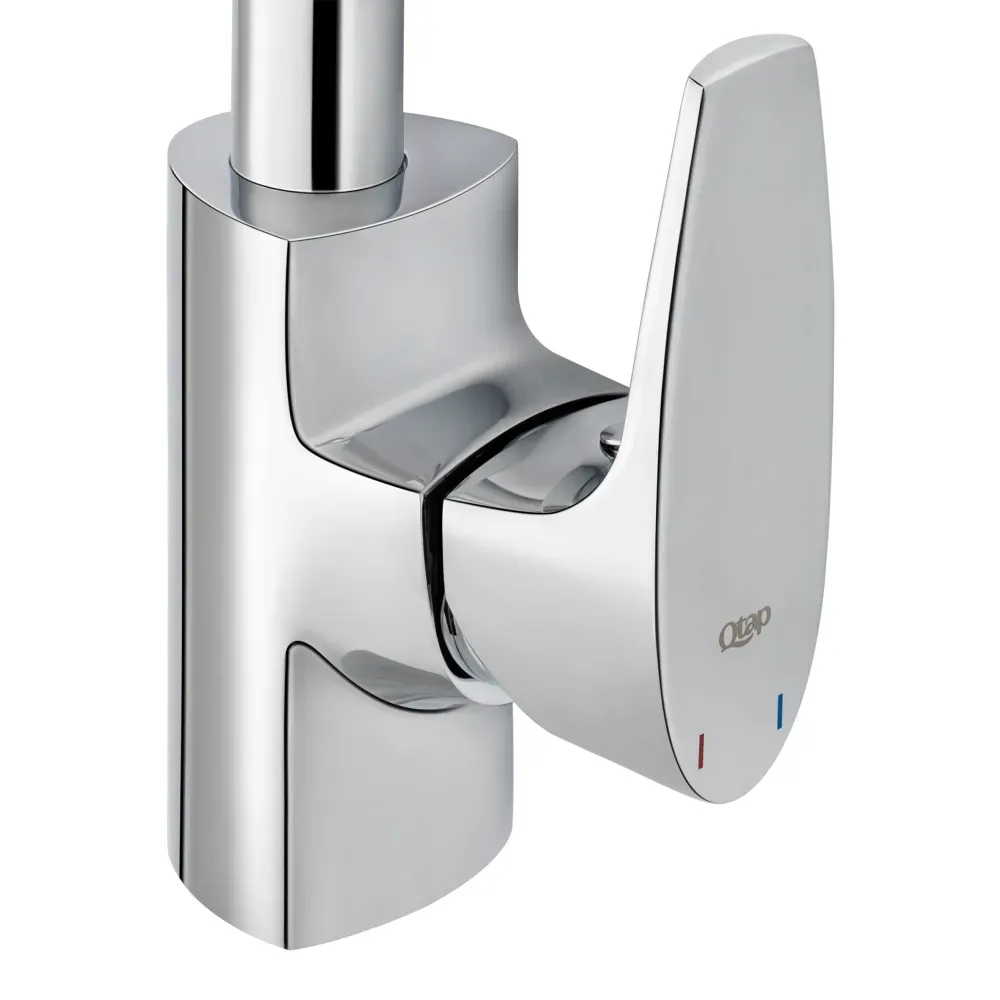 Змішувач для кухні Qtap Optima CRM 007 виготовлений з високоякісної харчової латуні, яка не схильна до корозії, стійка до ударів і появи тріщин. Глянцеве хромоване покриття не тільки підвищує довговічність змішувача, а й надає йому привабливості. Змішувач має одноважільне управління, за допомогою якого можна відрегулювати температуру і натиск холодної і гарячої води. Виріб виконаний в сучасному стилі, який ідеально впишеться в інтер‘єр кухні.