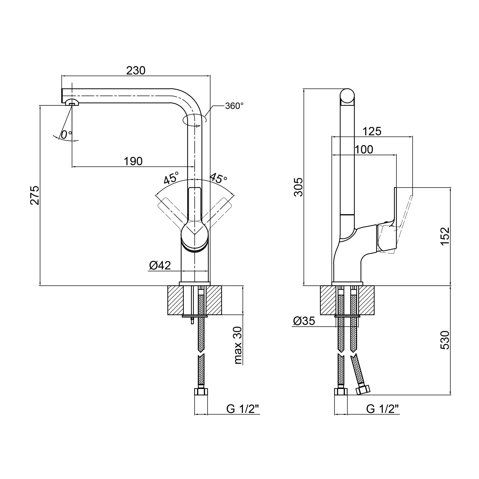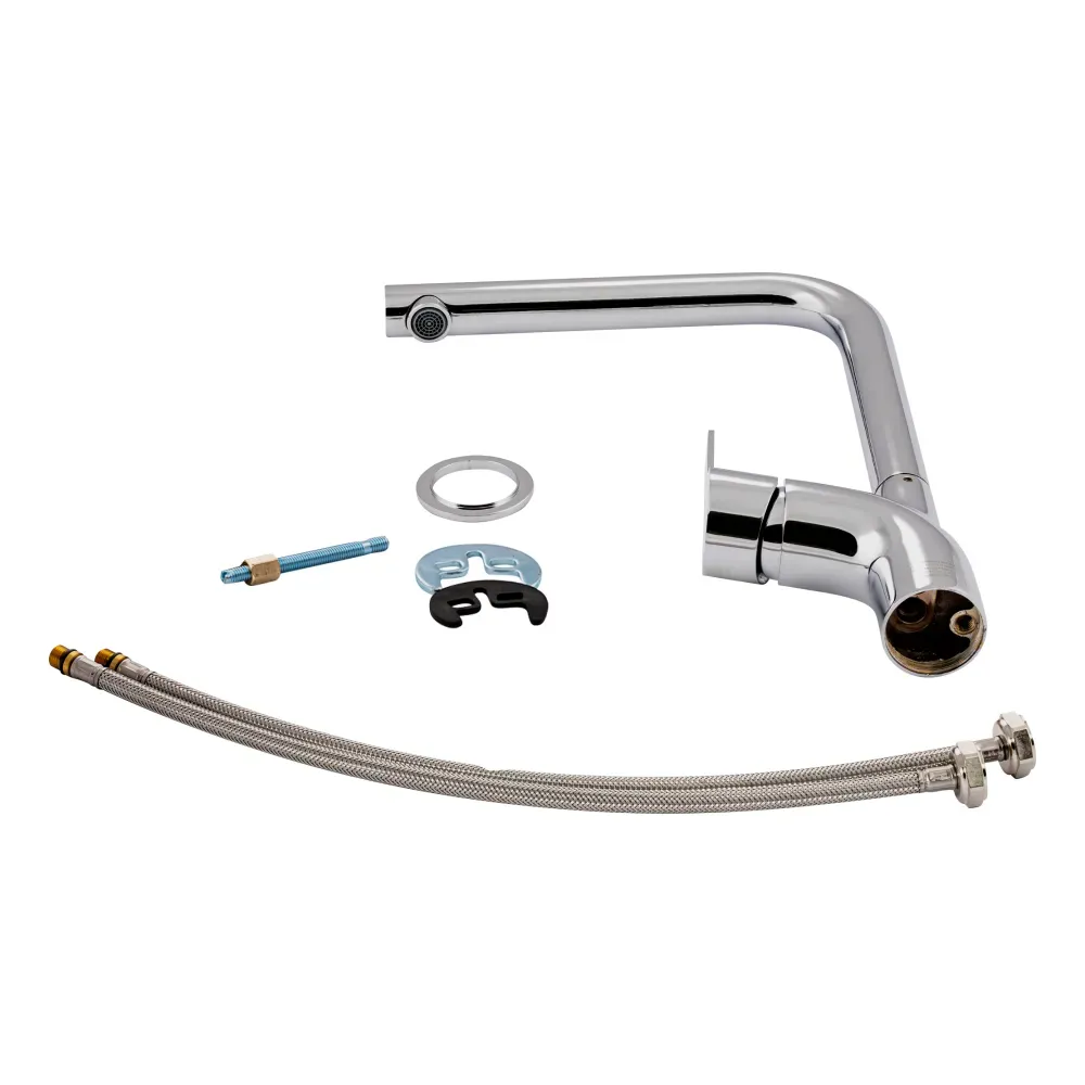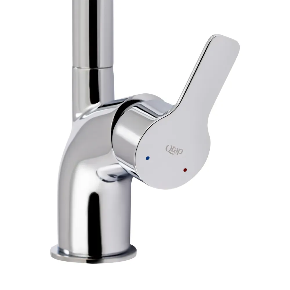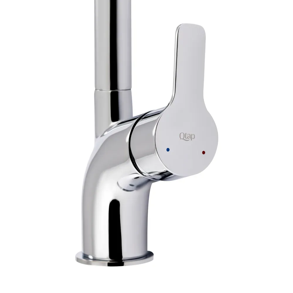 Змішувач для кухні Qtap Zdenek 9032102FC виготовлено з високоякісної харчової латуні, що стійка до впливу корозії, ударів і появи тріщин. Глянцеве хромоване покриття не тільки підвищує довговічність змішувача, а й надає йому привабливості. Змішувач має одноважільне керування, за допомогою якого можна відрегулювати температуру і напір води. Змішувач виконано в сучасному стилі, він ідеально доповнить інтер‘єр кухні.
