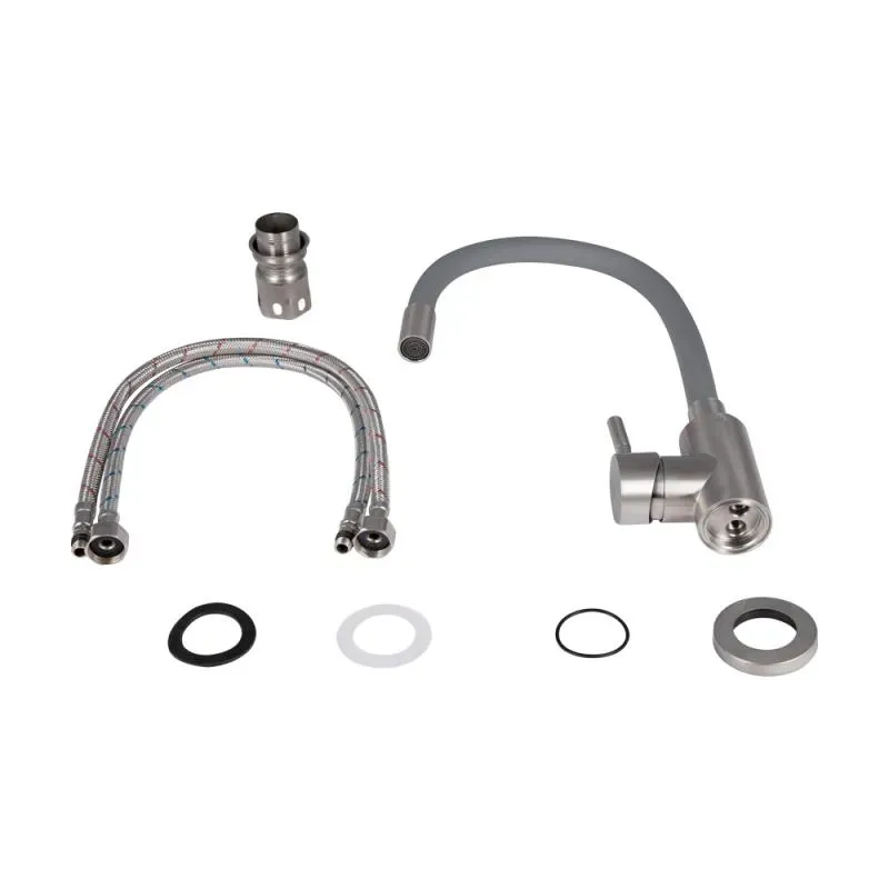 Lidz Aria 015F3 із гнучким виливом у сірому кольорі (k35) – ідеальний вибір для тих, хто цінує стиль та зручність. Гнучкий вилив дозволяє легко спрямовувати потік води, забезпечуючи комфорт у використанні, а сіре покриття надає змішувачу сучасного та витонченого вигляду. Керамічний картридж забезпечує надійну та довговічну роботу, роблячи цей змішувач чудовим вибором для вашої кухні.