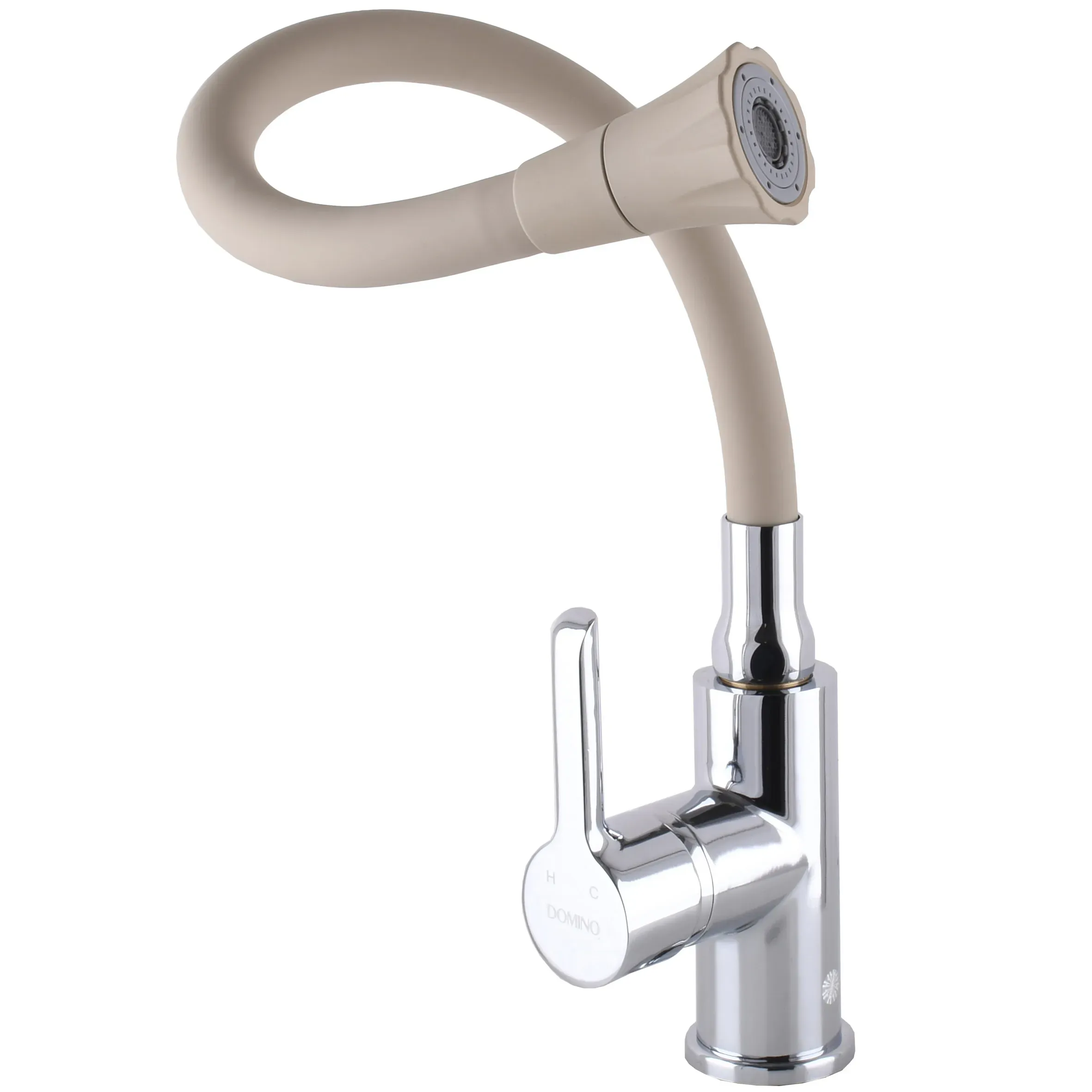 Змішувач для кухні Domino PRESTIGE DPS-203SA-K15, бежевий гофрогусак з душовою насадкою