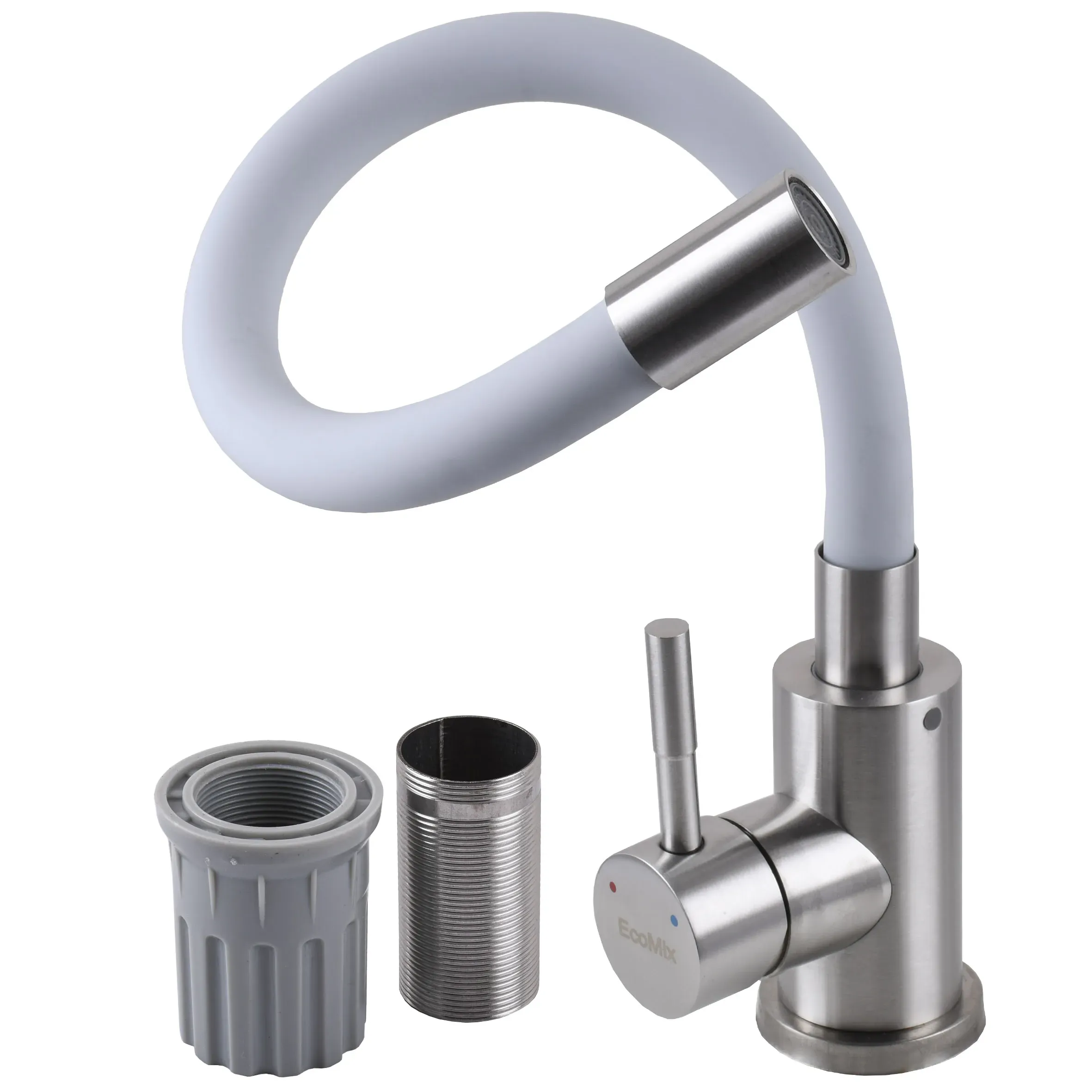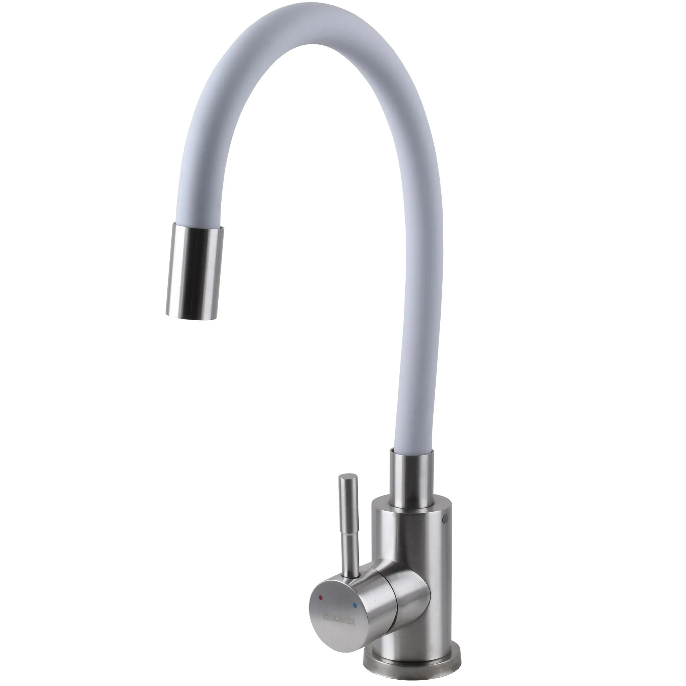 Змішувач для кухні EcoMIX SBT3-203SG боковий СІрий гофровилив НЕРЖ.на гайці 404