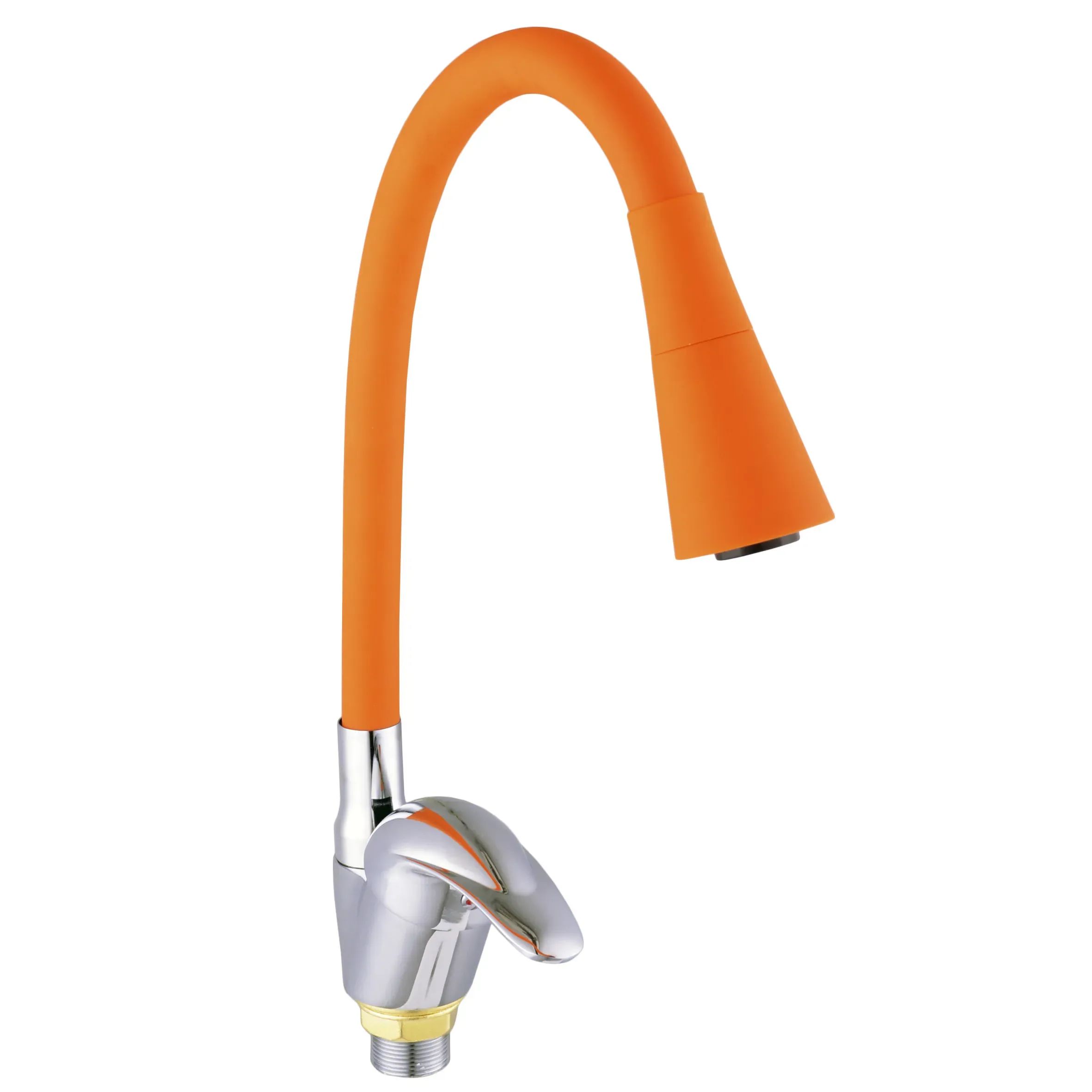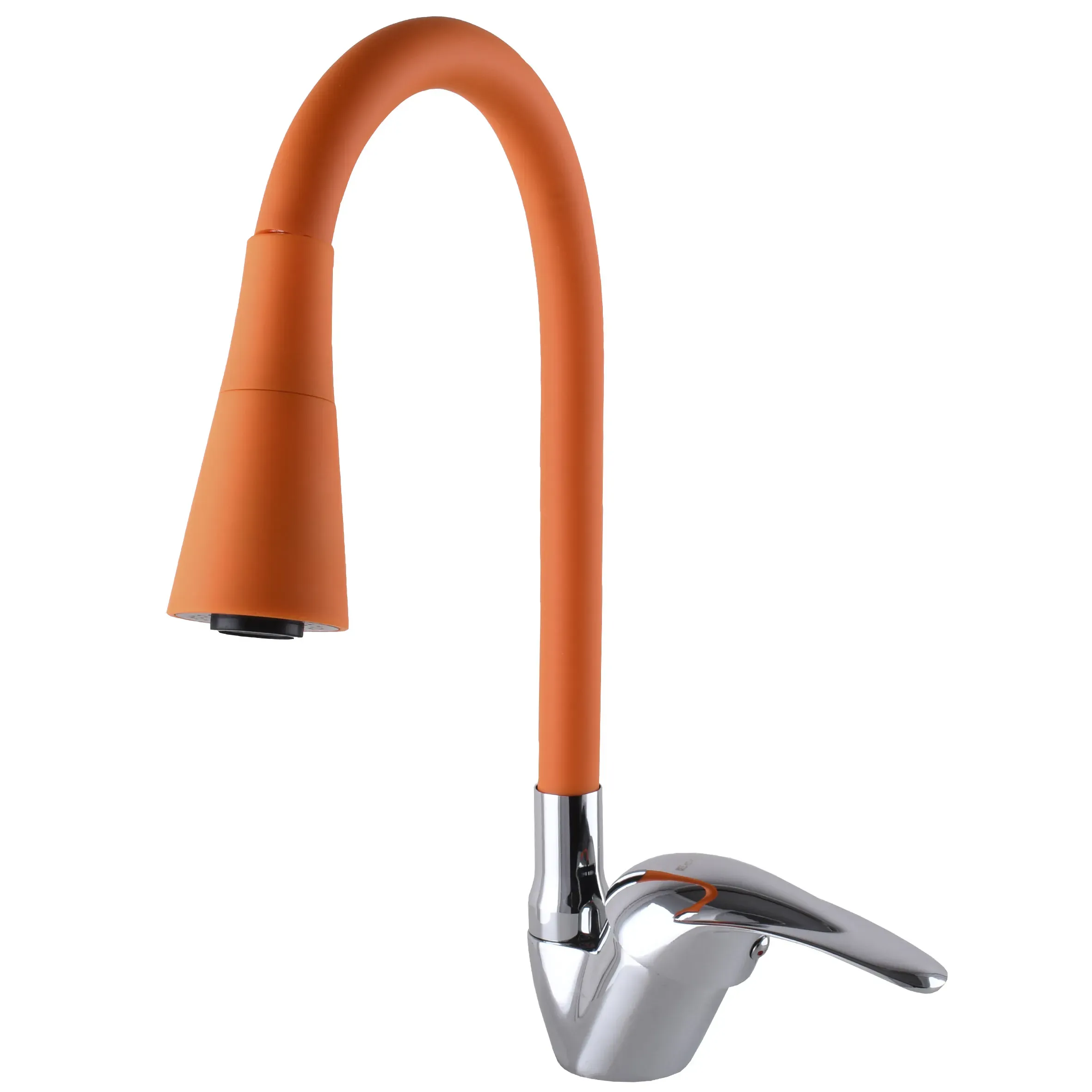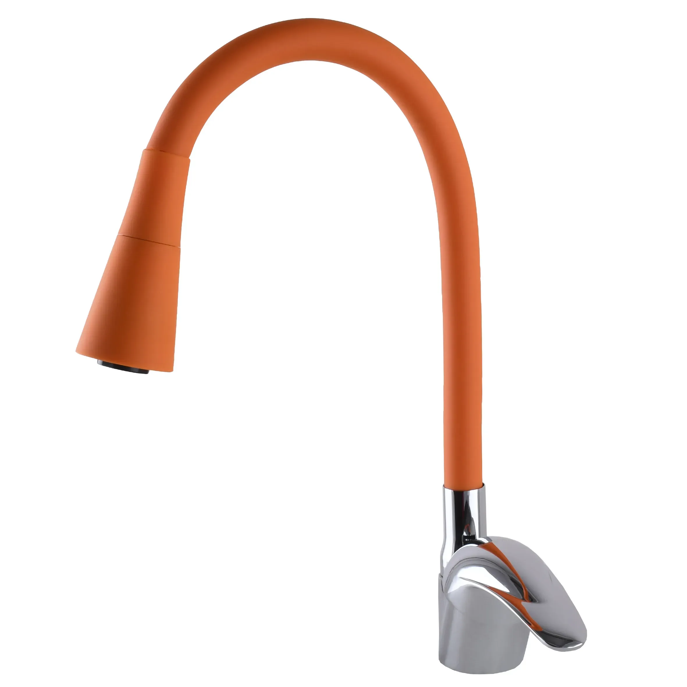 Змішувач для кухні EcoMix E-GEZ-203SK-R07 на гайці, гофровилив помаранчевий, з душовою насадкою
