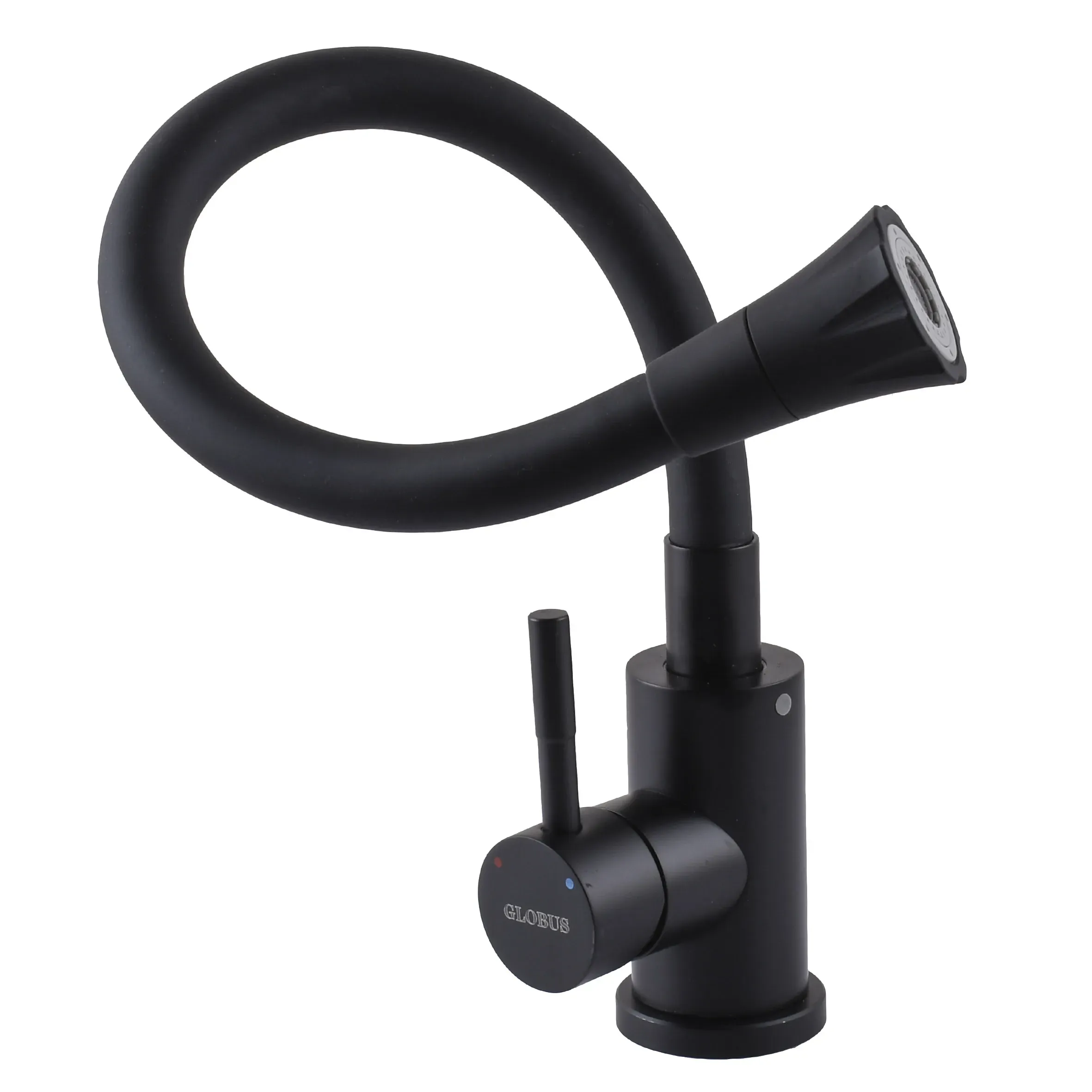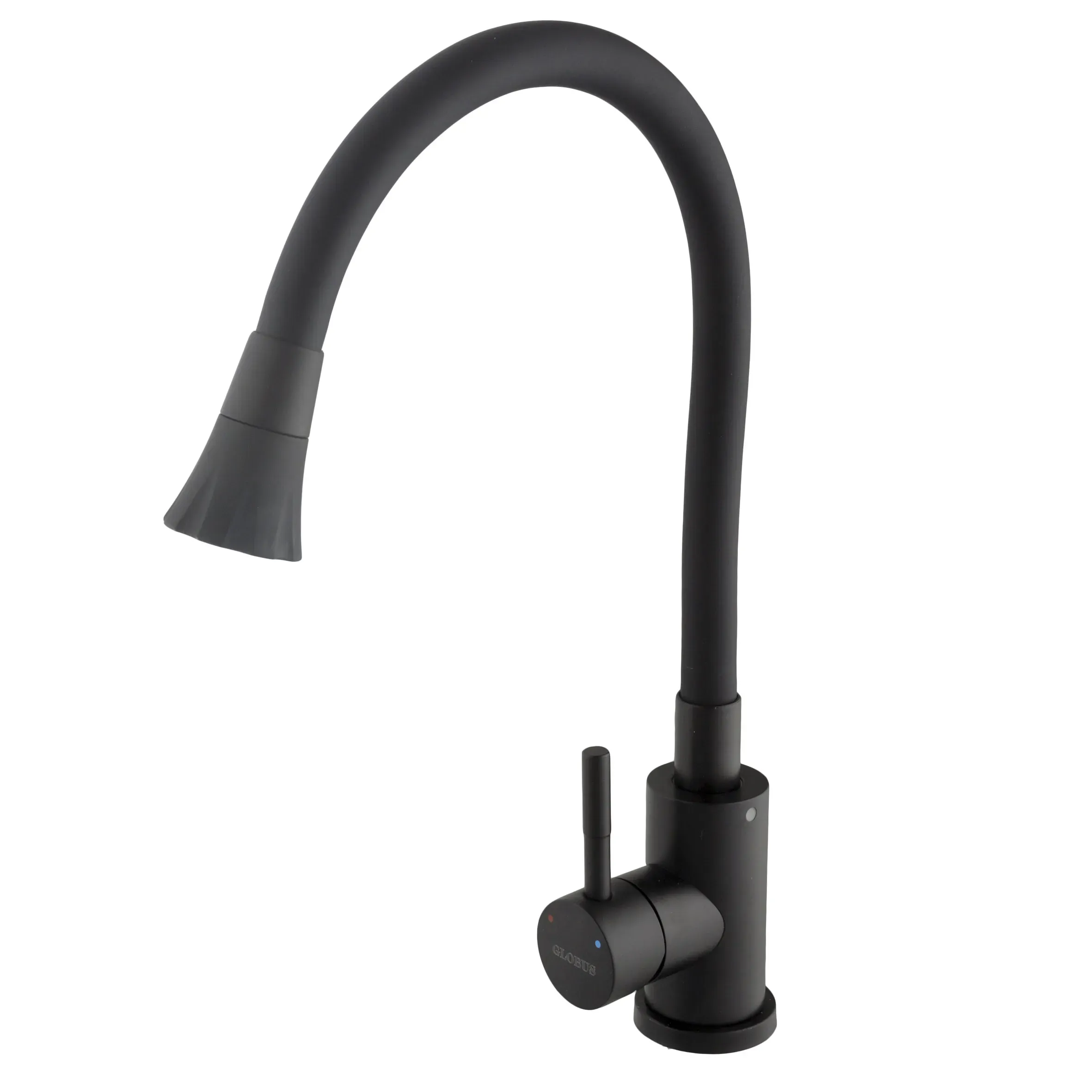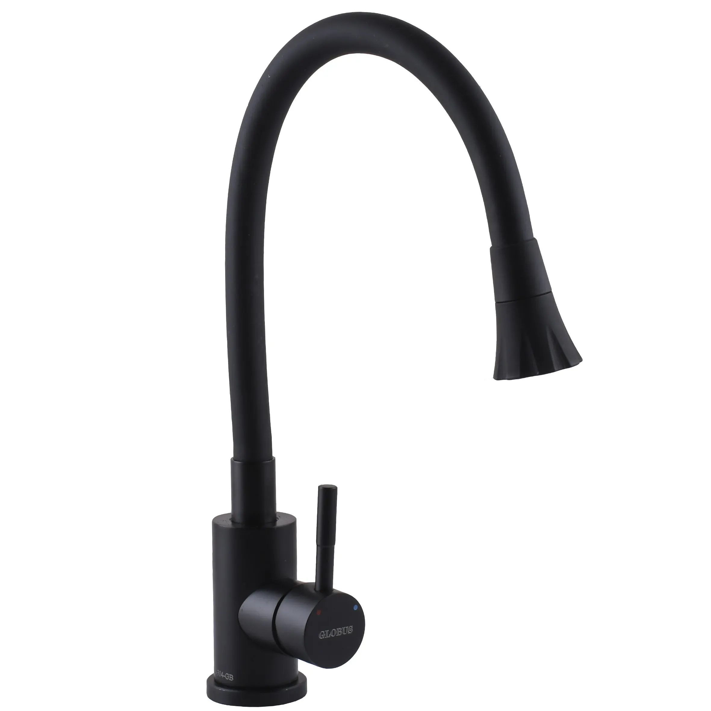 Змішувач для кухні Globus Lux ALPEN SBT1-203SA-BB-B01 чорний матовий з гнучким чорним гофровиливом, Нержавіюча сталь, на гайці