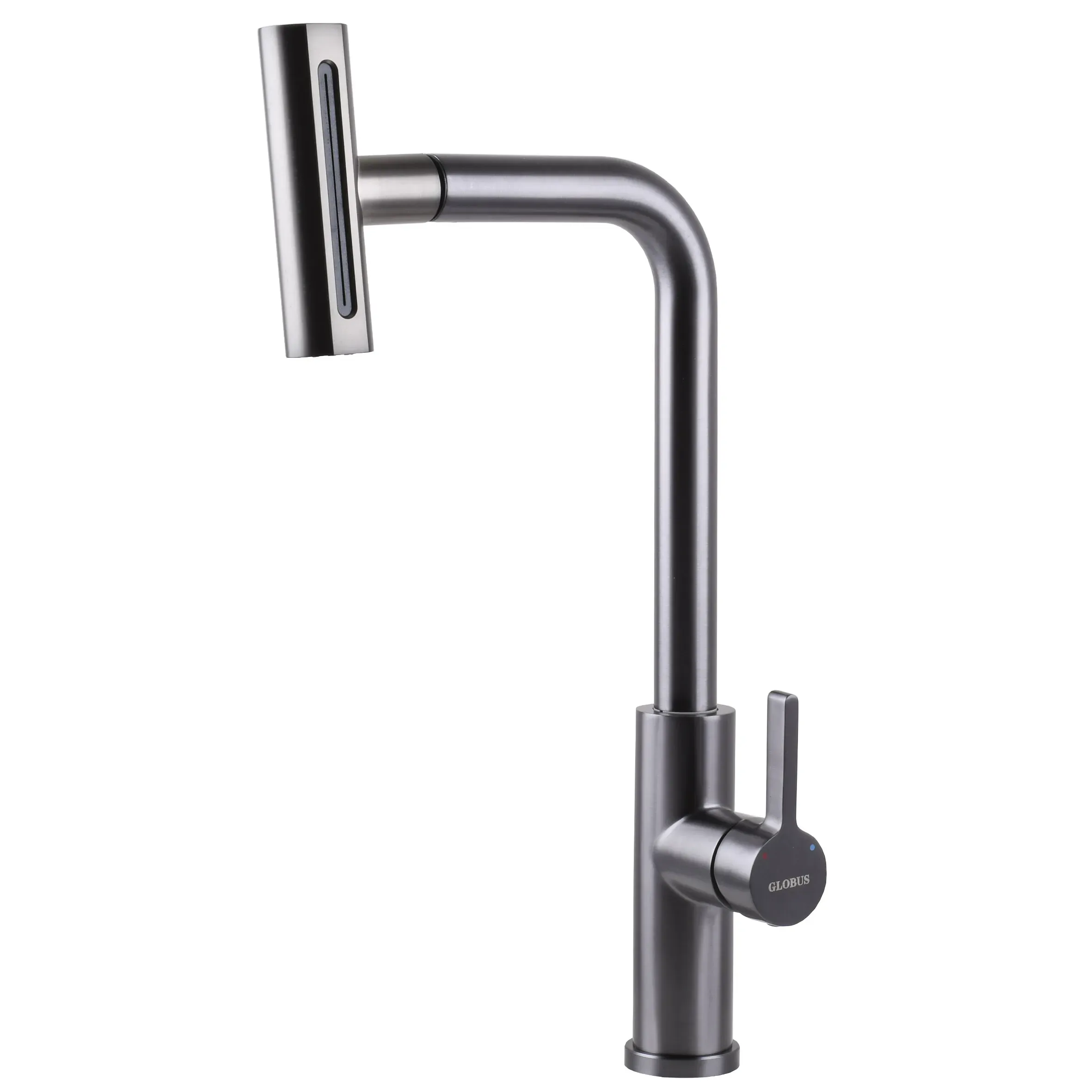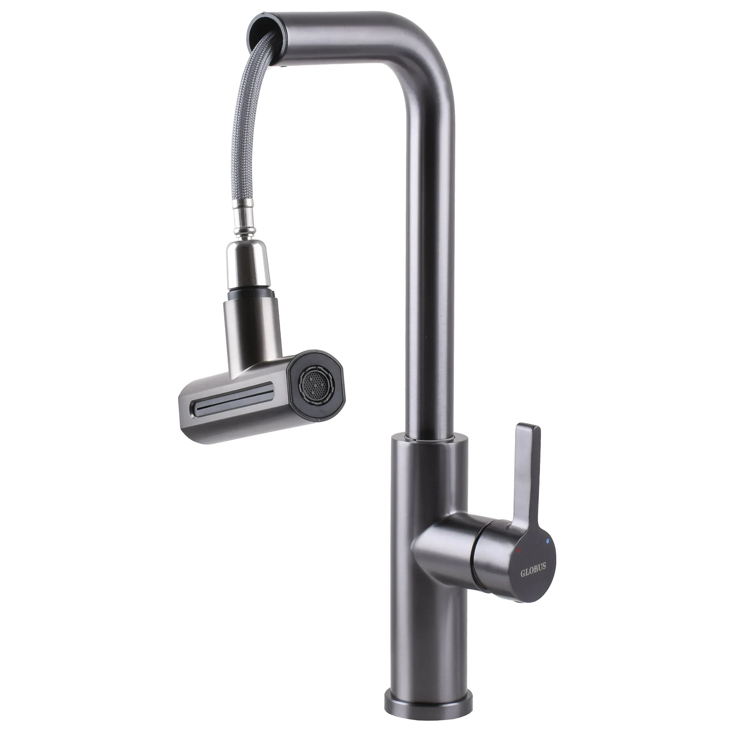 Змішувач для кухні Globus Lux ALPEN SBT1-2044-GP з витяжною лійкою (4 режима) водоспад-душ, графіт