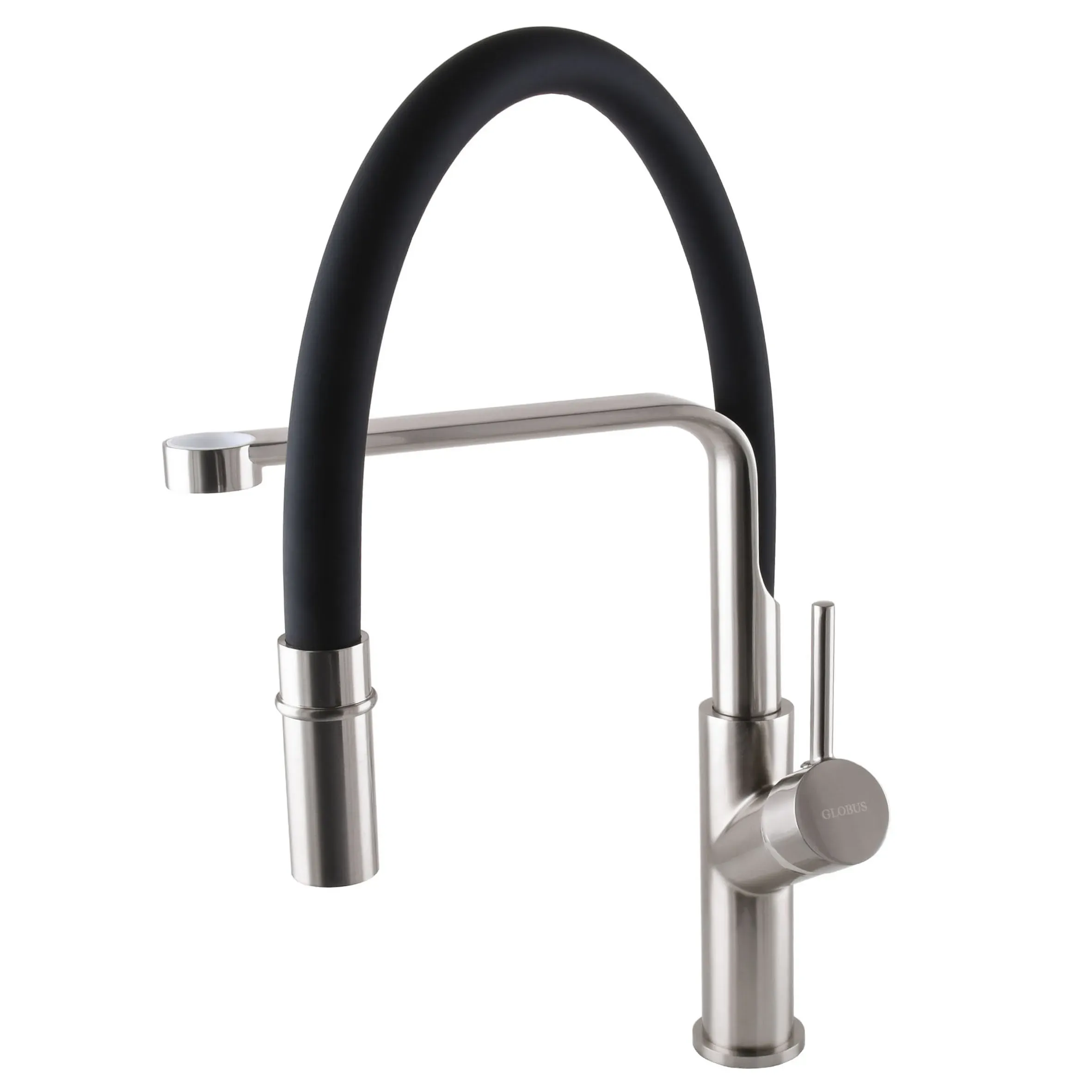 Змішувач для кухні Globus Lux DENVER Flex GDF-32-08-01 Сталь-Чорний Гофровилив, латунь