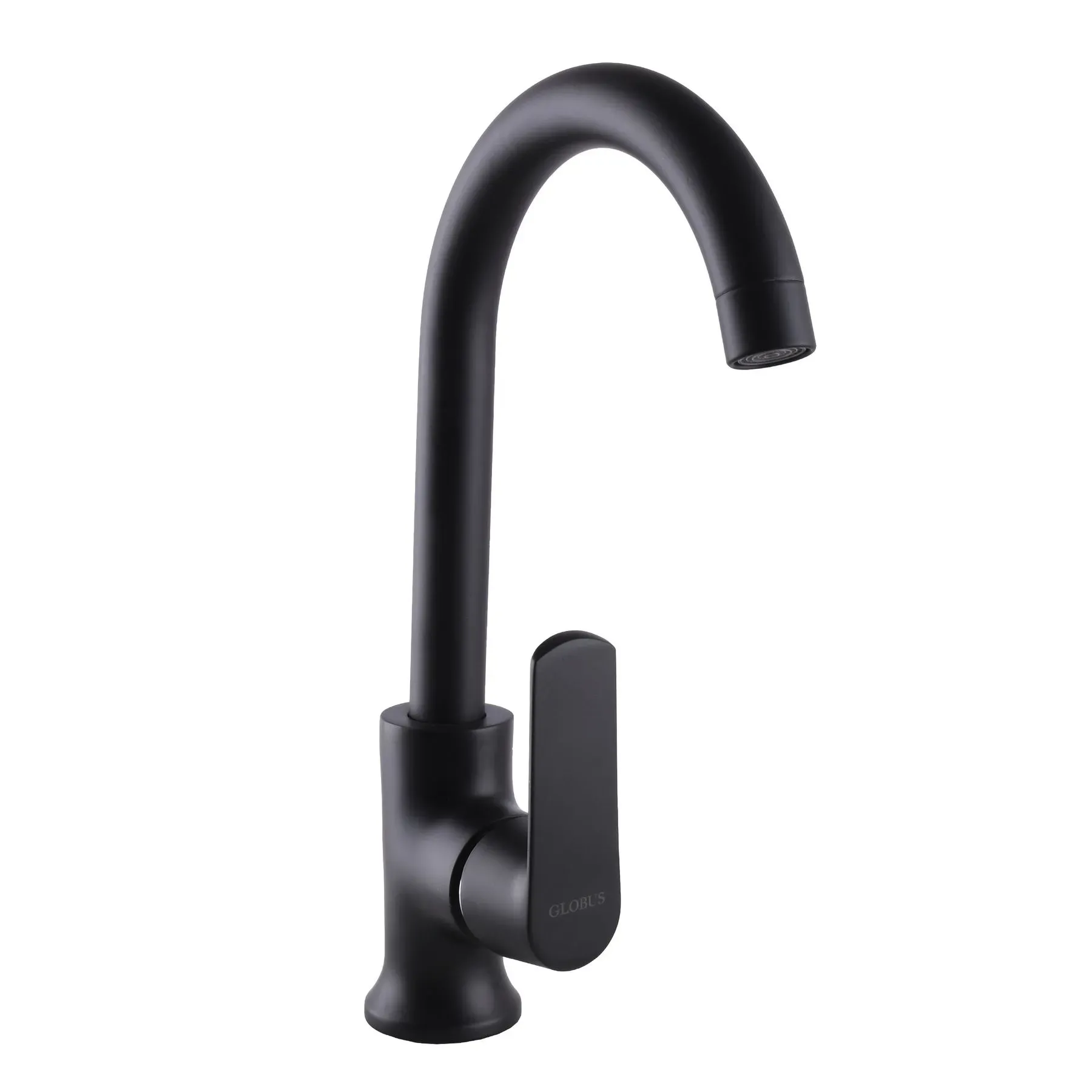 Змішувач для кухні Globus Lux Laguna GLA-0203SL-10-BB боковий латунь на гайці,Чорний матовий