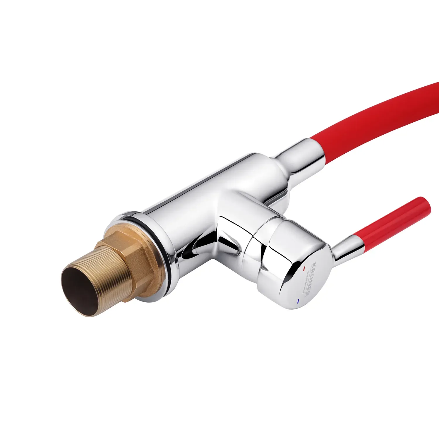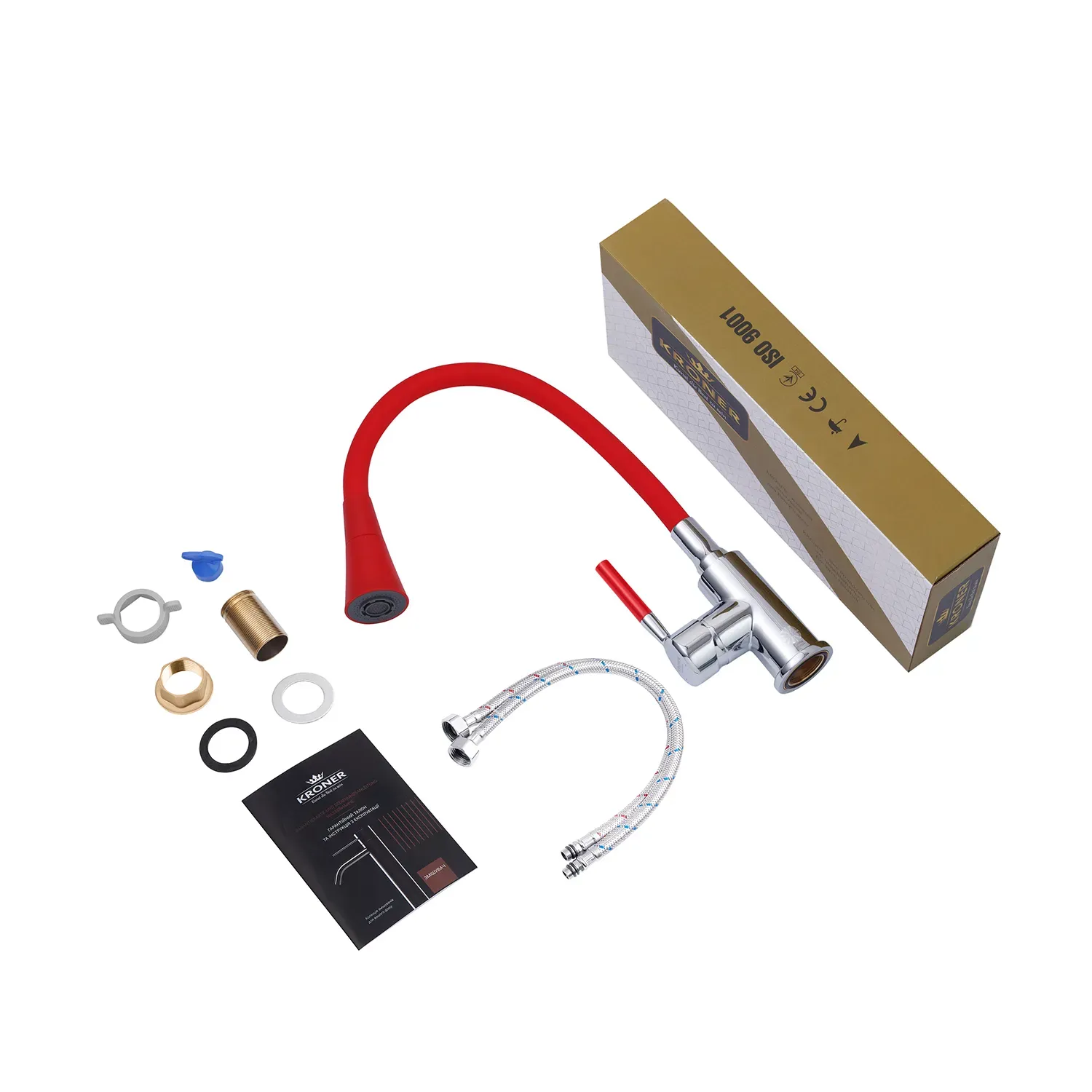 Змішувач для кухні Kroner KRM Kuche - C132RED - це стильний та функціональний варіант для вашої кухні. Виготовлений з високоякісного силуміну з силіконовим виливом, він поєднує міцність і зручність в експлуатації. Одноважільне керування дозволяє легко регулювати температуру і потік води.