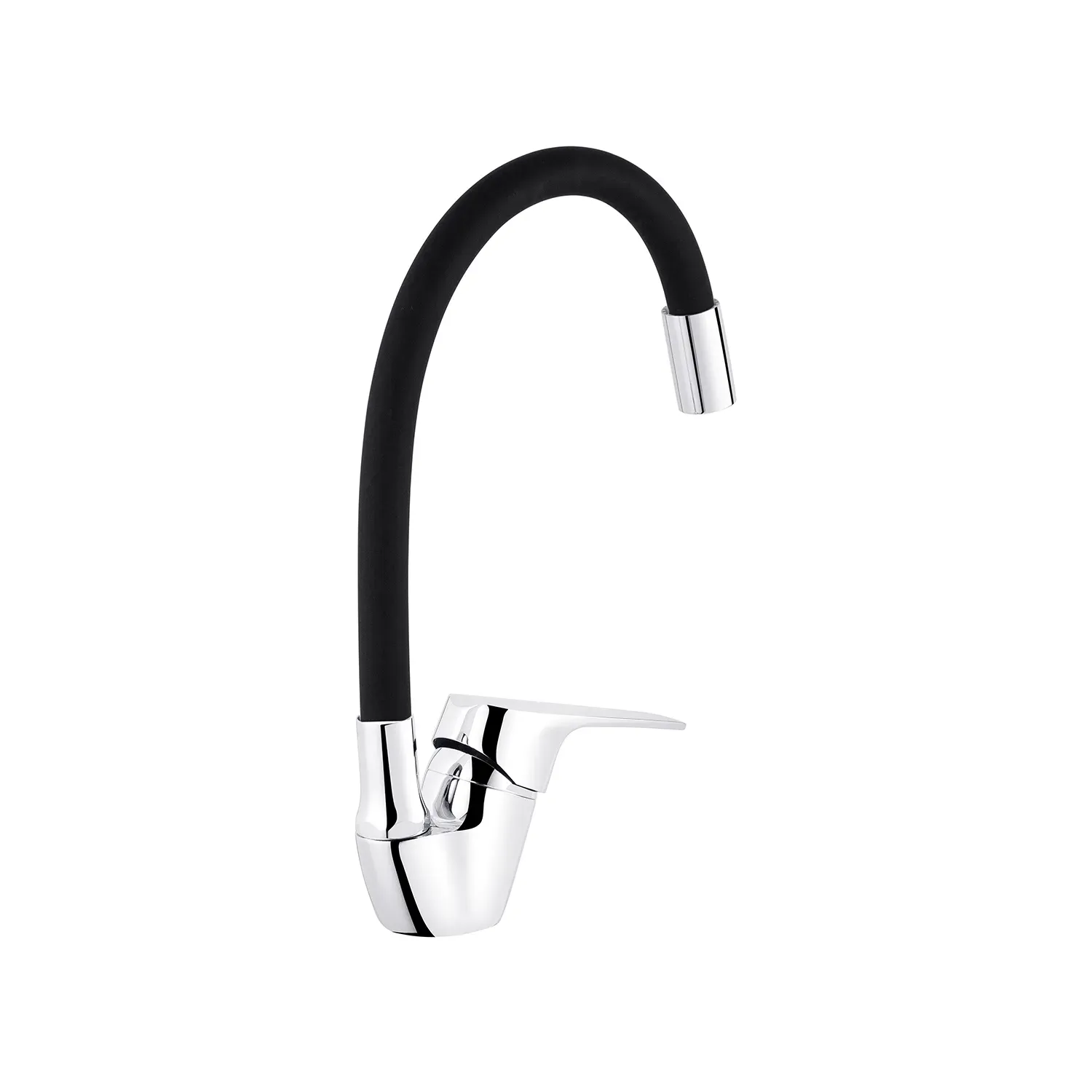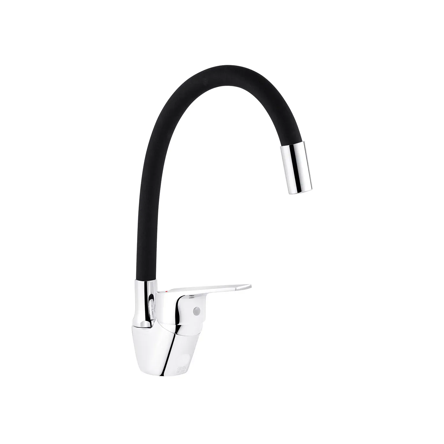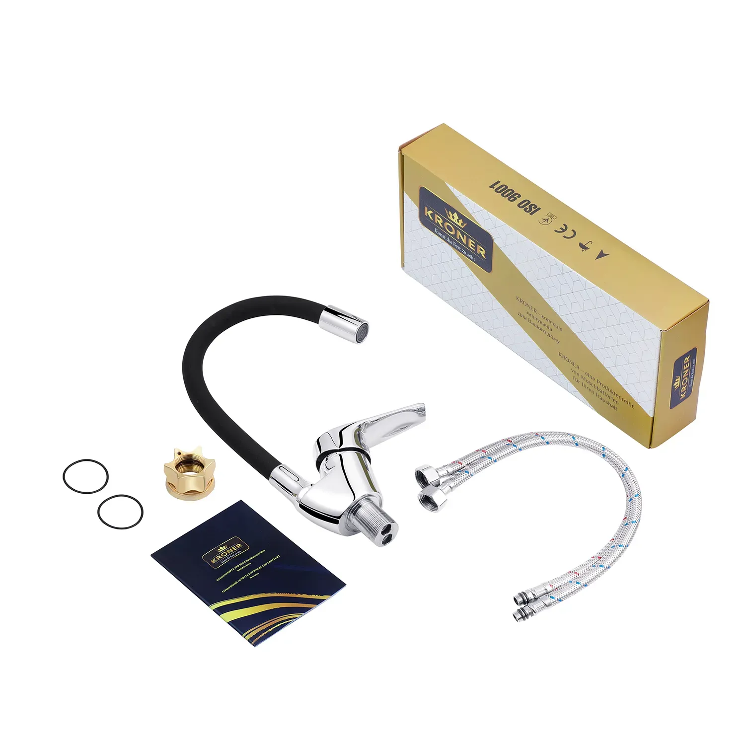 Змішувач для кухні Kroner KRM Odra - C032BLK- ідеальний вибір для вашої кухні. Виготовлений з високоякісного силуміну, він гарантує міцність та довговічність. Має привабливий глянцевий хромовано-чорний колір, що додає йому елегантності. Змішувач оснащений картриджним механізмом змішування, що дозволяє зручно регулювати температуру води. Його унікальна U-подібна форма виливу забезпечує зручність під час наповнення посуду або миття продуктів. Насолоджуйтесь функціональністю і стилем змішувача Kroner.