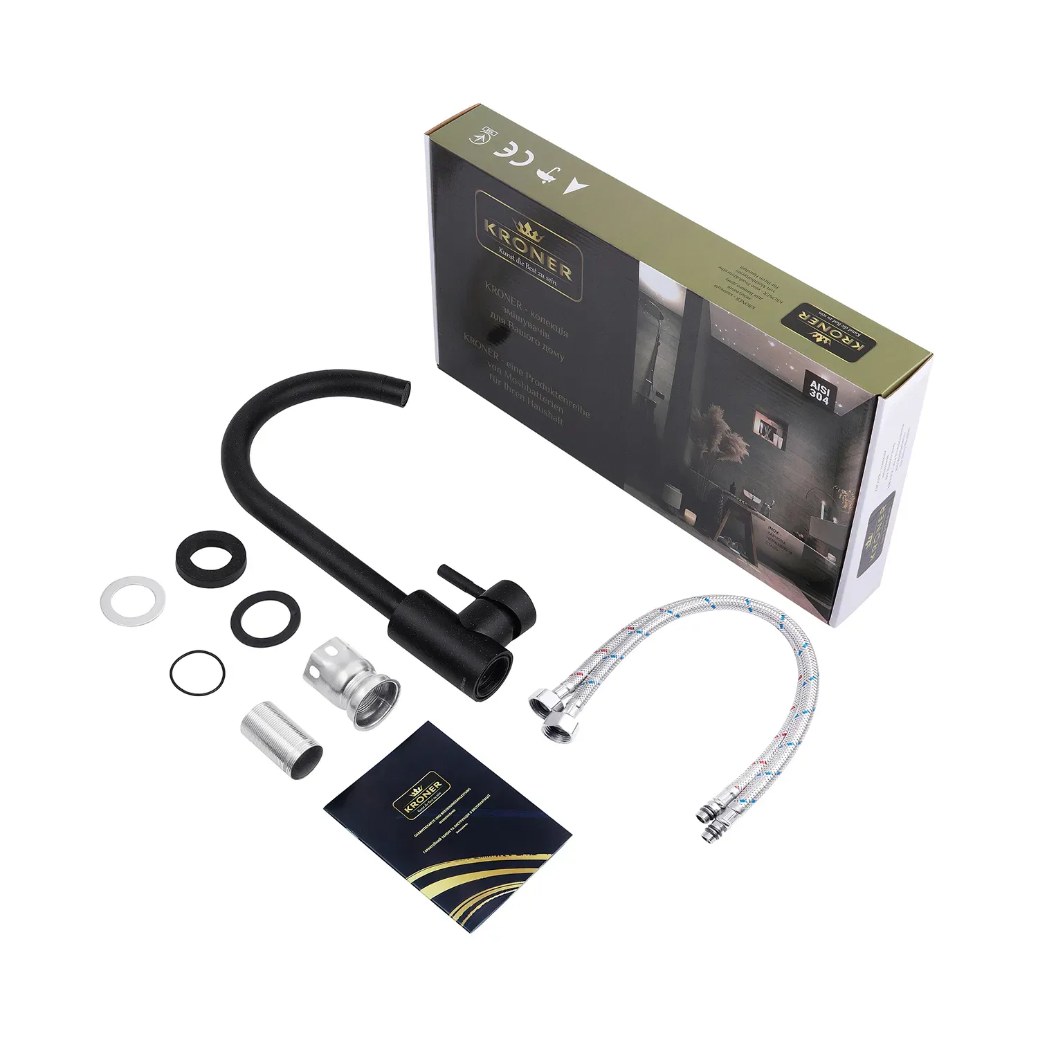 Кухонні змішувачі від Kroner – це німецька якість, технологія та надійність. Сучасний дизайн стане вдалим доповненням інтер’єру кухні. Виготовленні з якісних матеріалів, що не піддаються корозії, легкість у збірці не завдасть клопоту при монтажу та використанні. Мають поворотний вилив і встановлюється на один отвір із підведенням води за допомогою гнучких шлангів М10х1/2". Шланги для підключення входять у комплект. Данна модель виготовлена з нержавіючої сталі AISI 304.