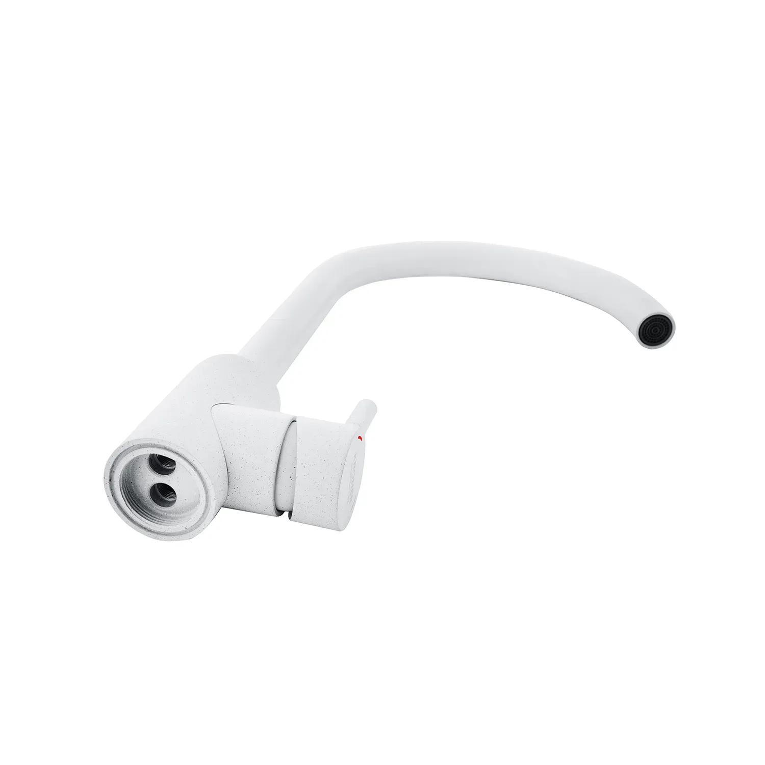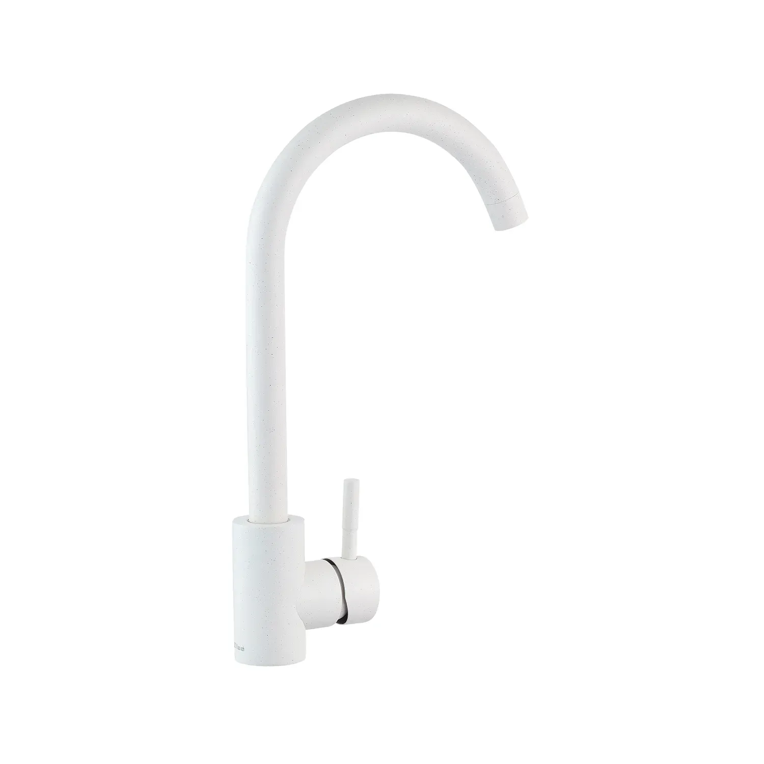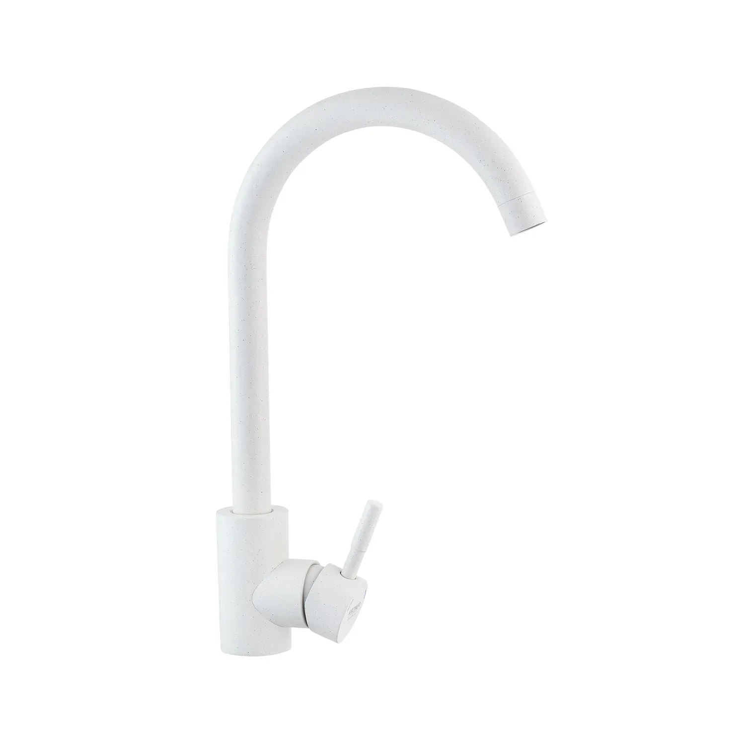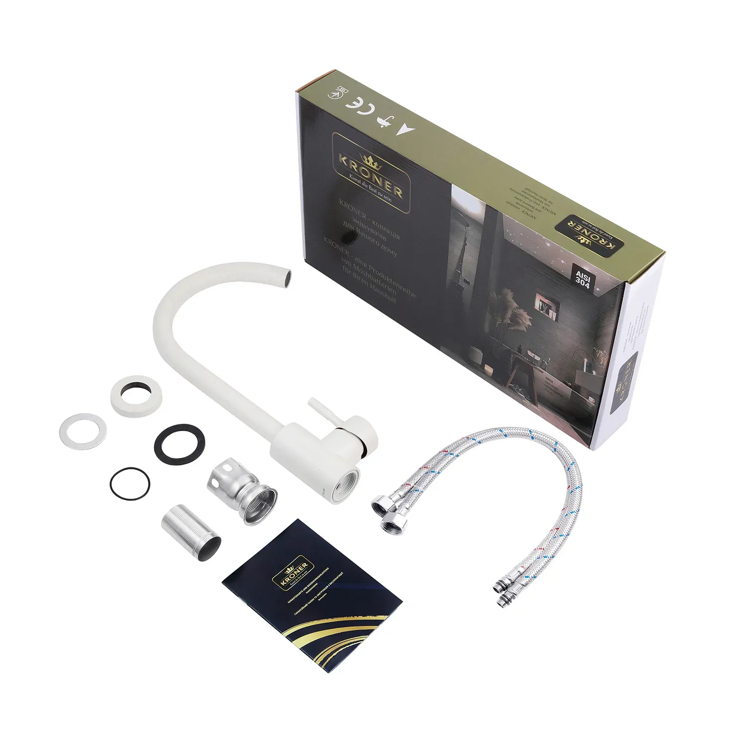 Змішувач для кухні Kroner KRP Edelstahl Klassisch - WEI035 - ідеальний вибір для вашої кухні. Виготовлений із нержавіючої сталі, він гарантує міцність та довговічність. Має привабливий матовий білий колір, що додає йому елегантності. Змішувач оснащений картриджним механізмом змішування, що дозволяє зручно регулювати температуру води. Його унікальна U-подібна форма виливу забезпечує зручність під час наповнення посуду або миття продуктів. Насолоджуйтесь функціональністю та стилем змішувача Kroner.