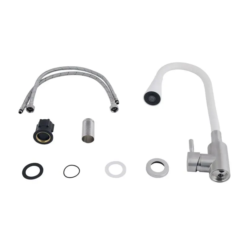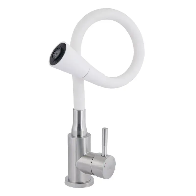 Lidz Aria 015F31 Змішувач для кухні з гнучким виливом (k35) White / Nickel – це стильне та функціональне рішення для вашої кухні. Гнучкий вилив дозволяє зручно керувати напрямком потоку води, а біле покриття у поєднанні з нікелем надає змішувачу сучасного вигляду. Висока якість матеріалів забезпечує довговічність та надійність в експлуатації.