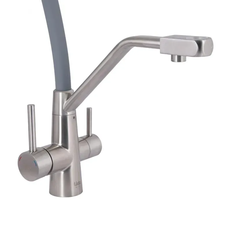 Змішувач для кухні lidz aria 020f3 з гнучким виливом сірим для питної води (k35) ldari020f3