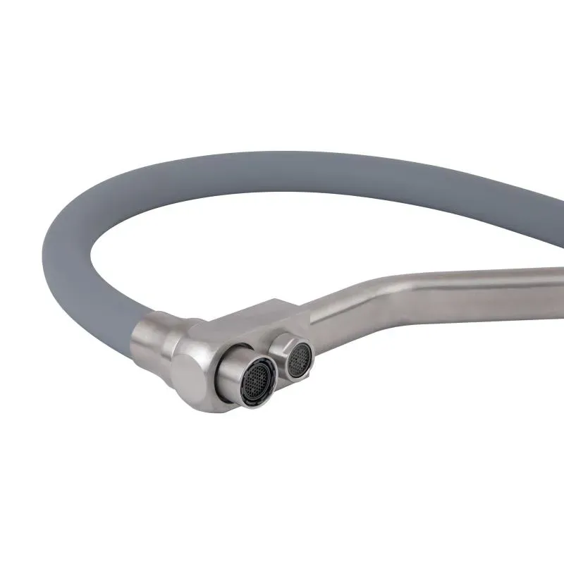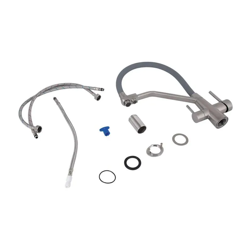 Змішувач для кухні Lidz Aria 020F3 з гнучким виливом та підключенням для питної води (k35) Grey / Nickel поєднує функціональність гнучкого виливу та можливість підключення питної води. Гнучкий вилив спрощує керування напрямком потоку води, а високоякісні матеріали забезпечують довговічність та надійність в експлуатації.