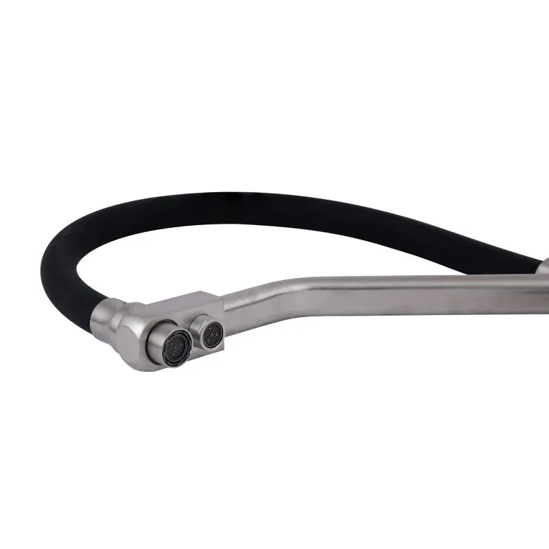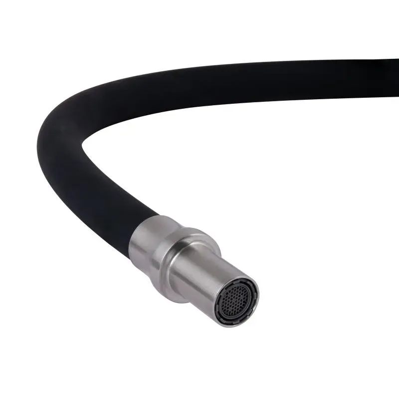 Змішувач для кухні Lidz Aria 020F3 з гнучким виливом та підключенням для питної води (k35) Black / Nickel поєднує функціональність гнучкого виливу та можливість підключення питної води. Чорний колір з нікельованими елементами створює сучасний і стильний дизайн, а високоякісні матеріали забезпечують довговічність та надійність змішувача.