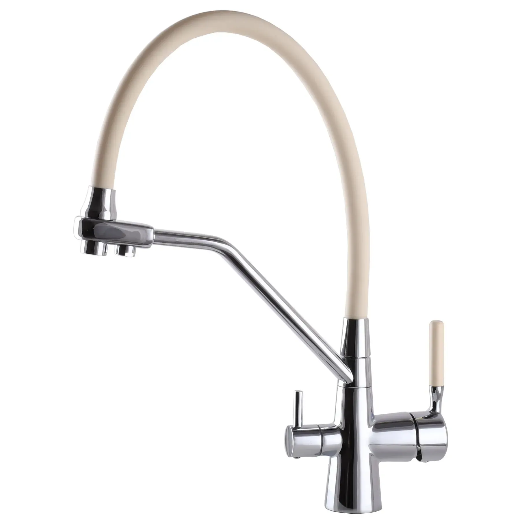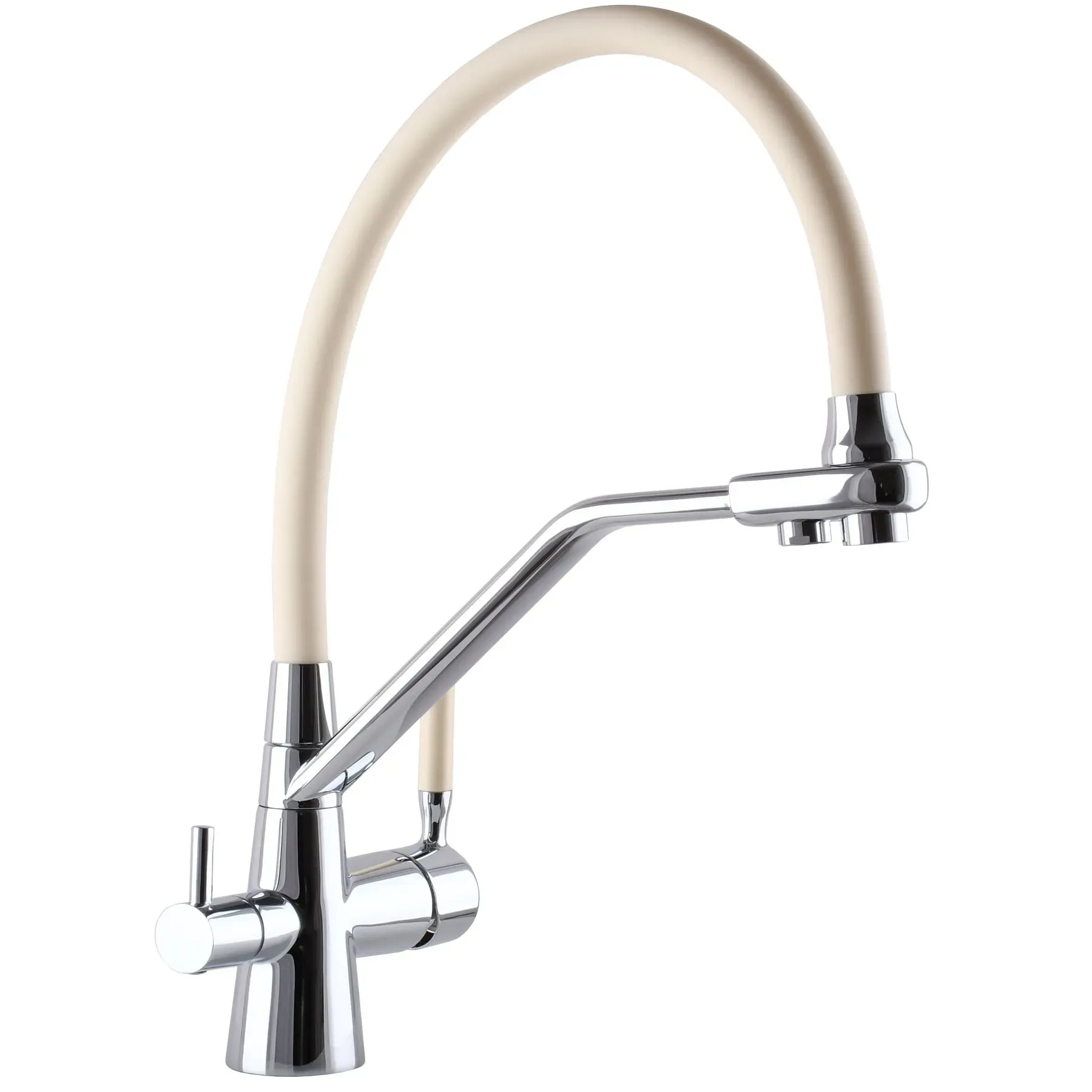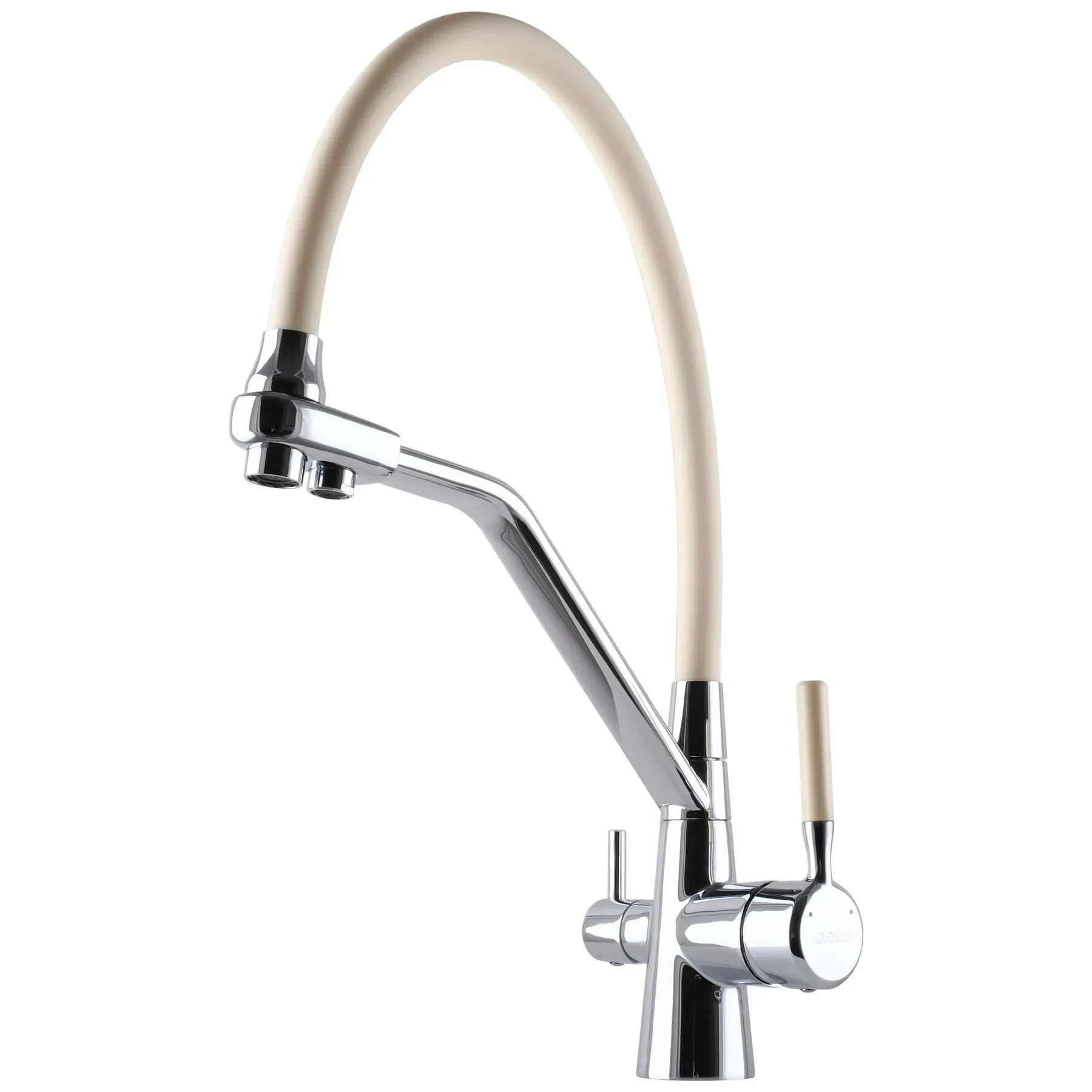 Кухонний змішувач Globus Lux LAZER GLLR-0800-00-06, комбінований під ОСМОС, гофрогусак кольору слонова кістка, колір корпусу- хром