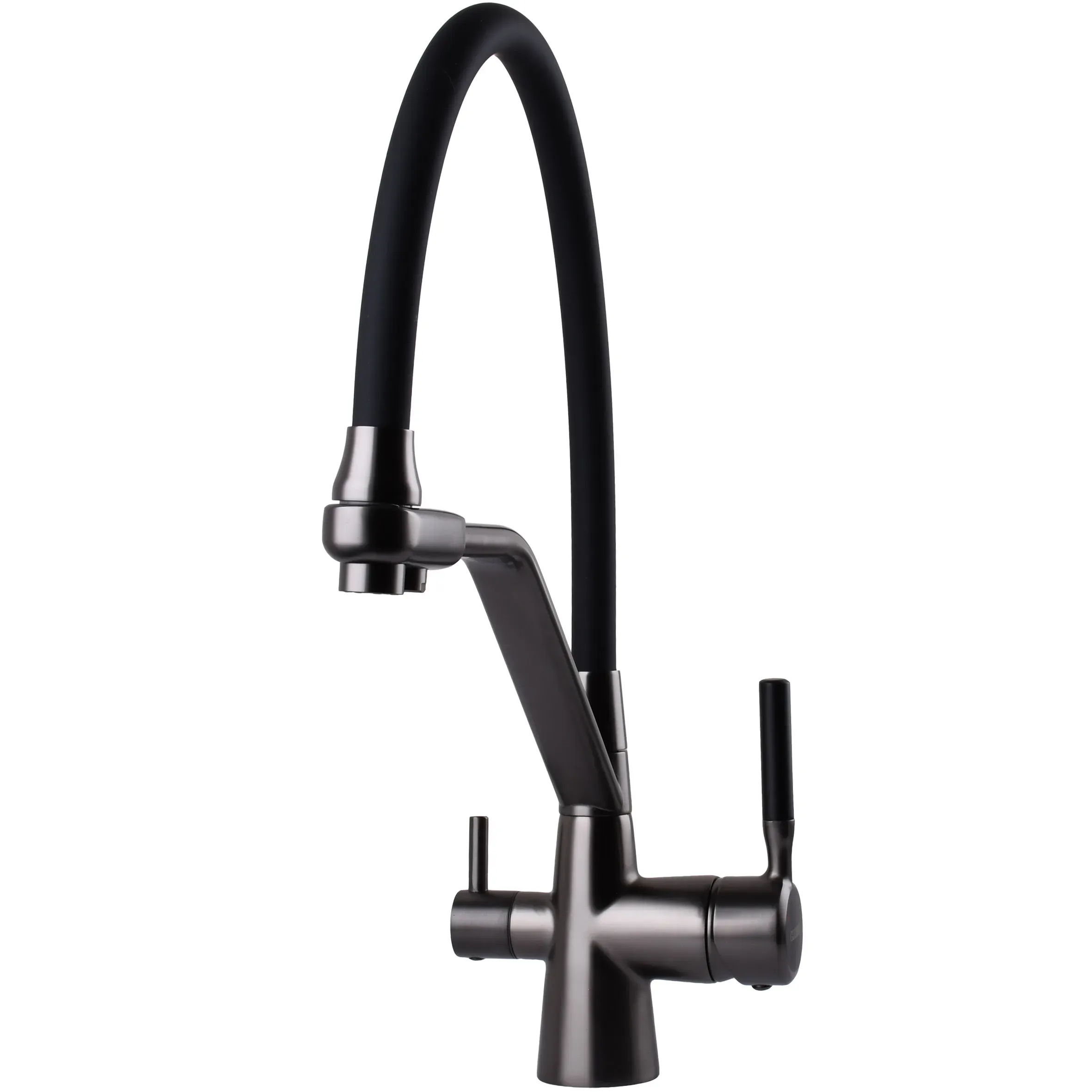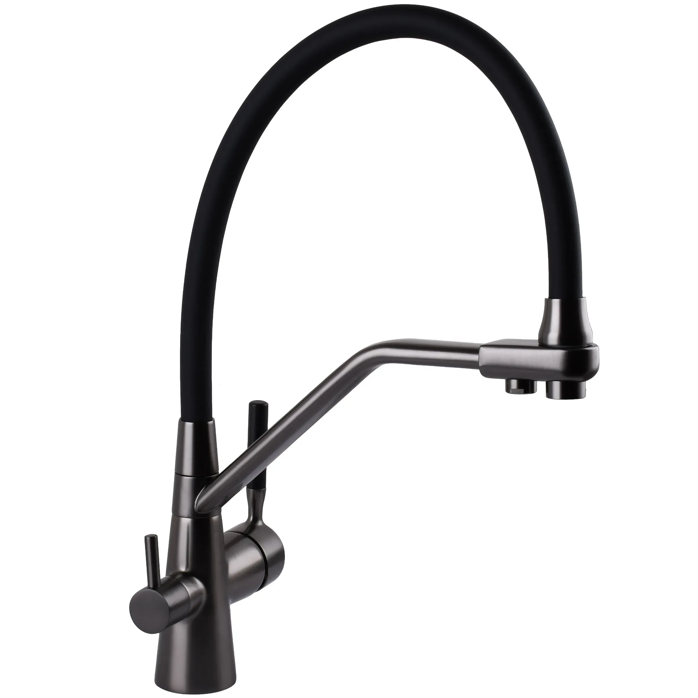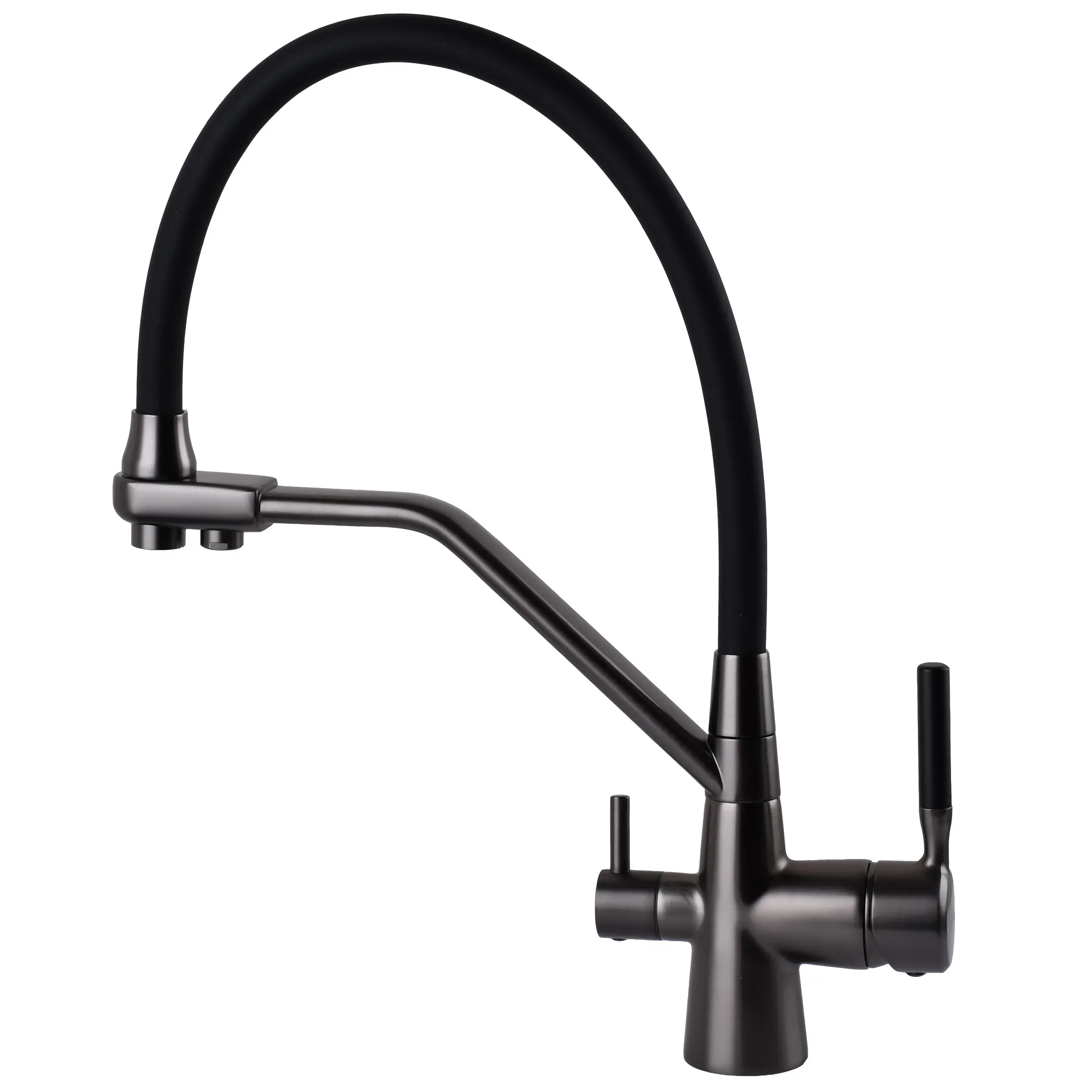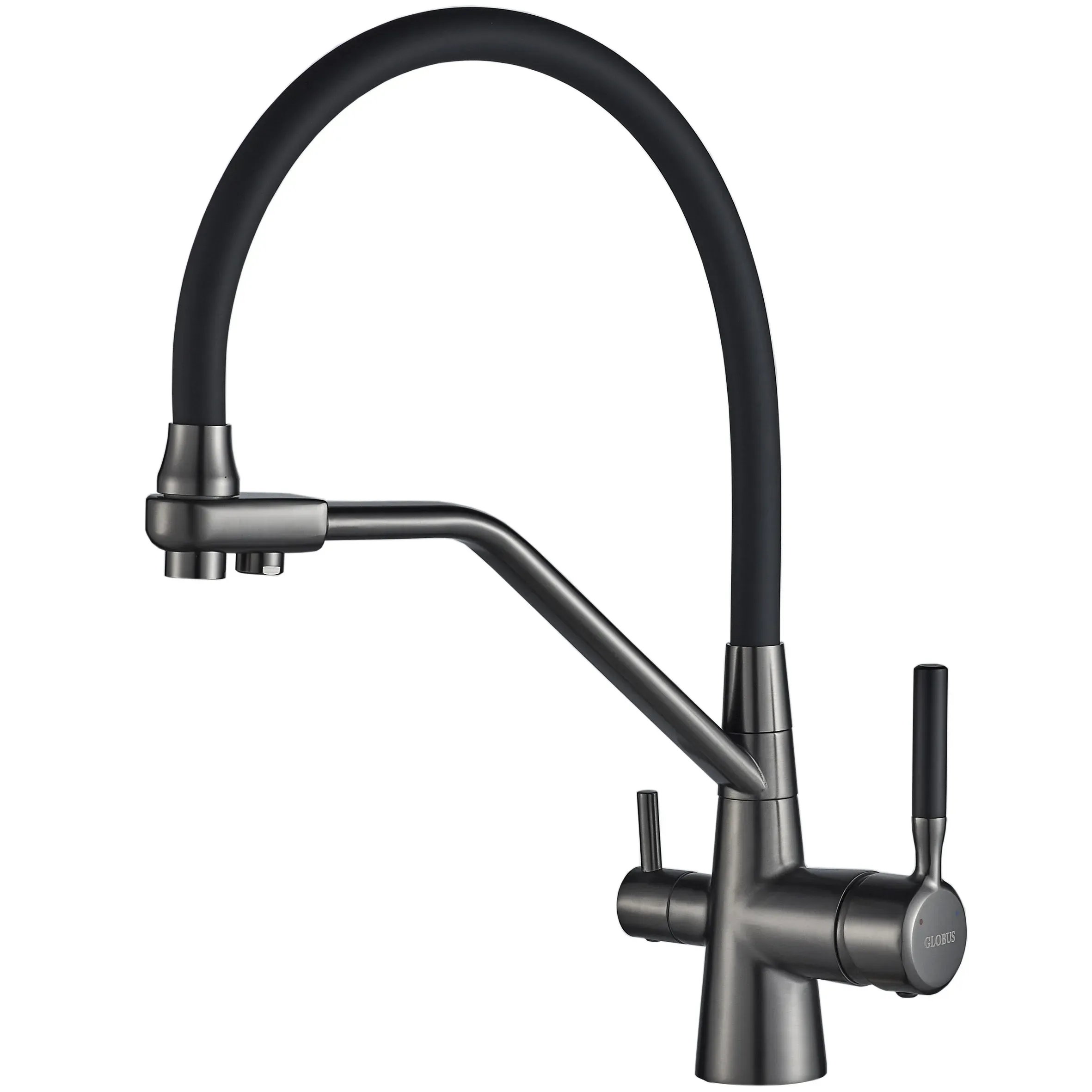 Кухонний змішувач Globus Lux LAZER GLLR-0800-11-01 , комбінований під ОСМОС, чорний гофрогусак, колір корпусу- графіт