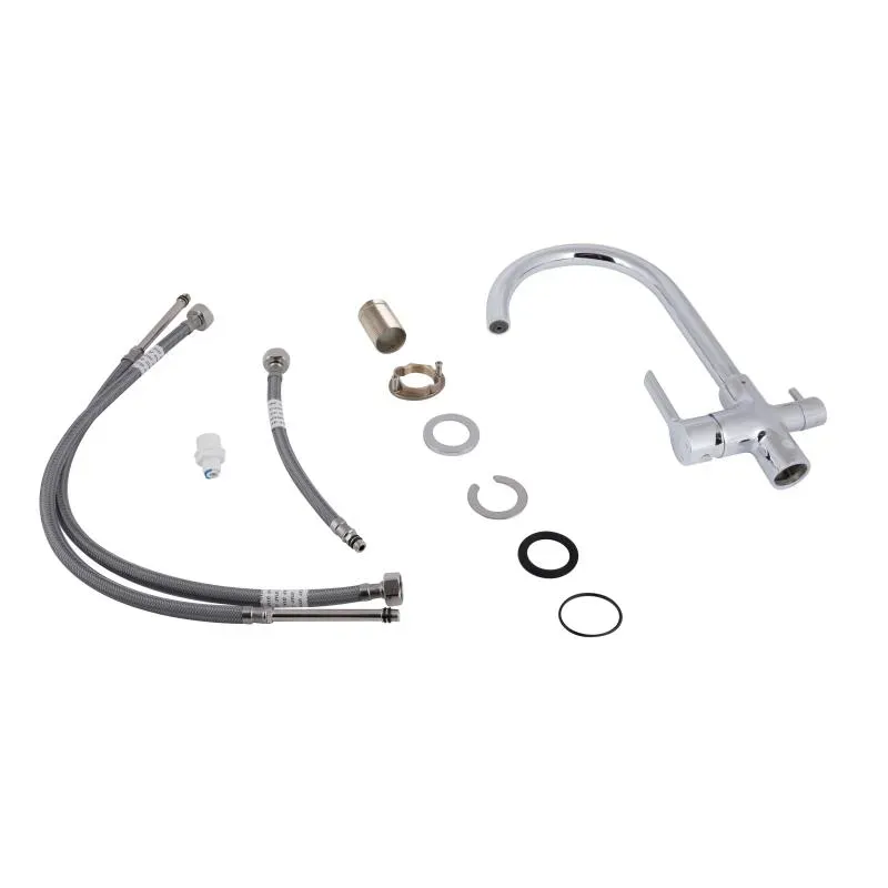 Змішувач для кухні з підключенням для питної води Qtap Grand QTGRA362CRM45667 в хромованому виконанні поєднує стиль і функціональність. Хромоване покриття захищає виріб від корозії та механічних пошкоджень, забезпечуючи довговічність та зручність у догляді.