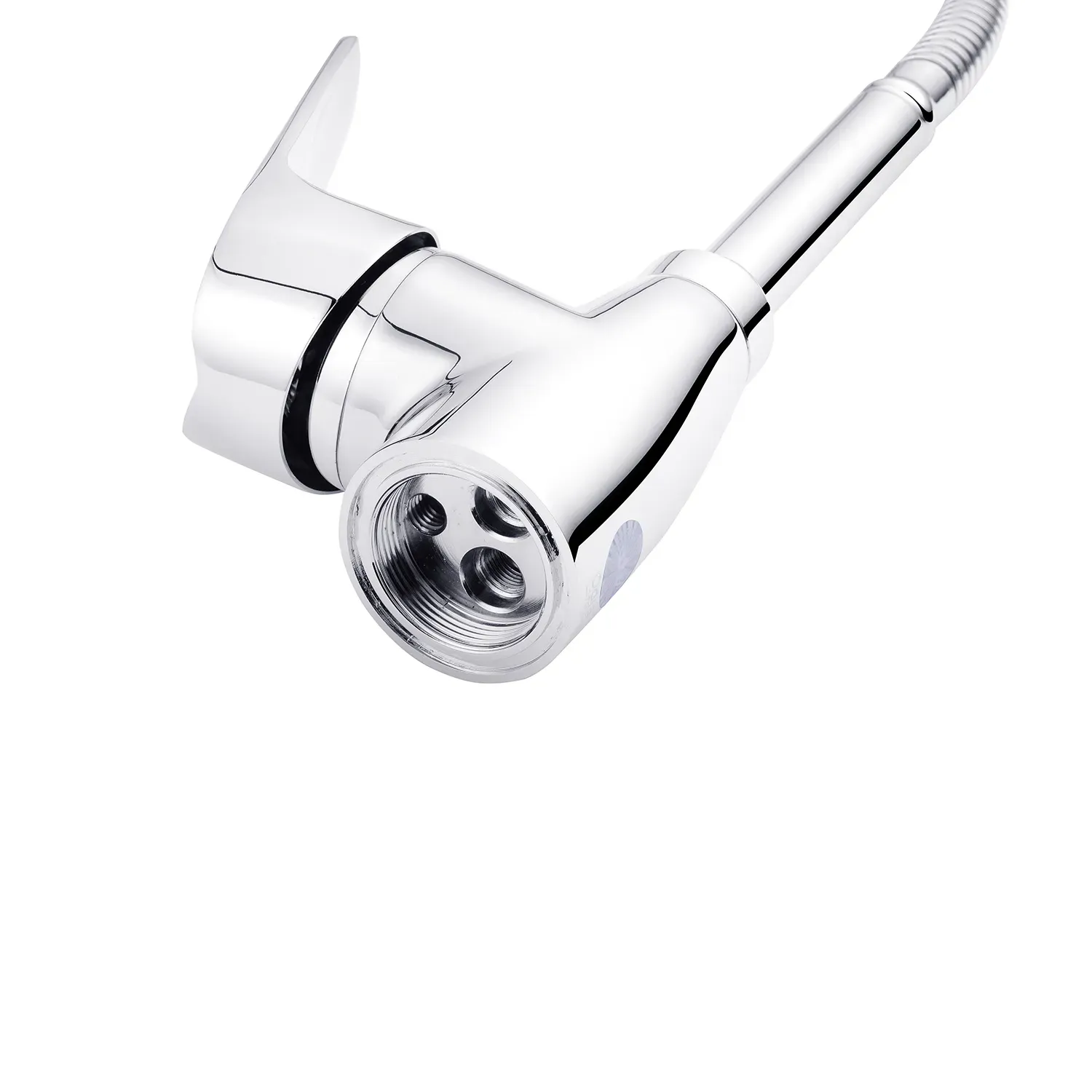 Змішувач для кухні з гнучким виливом Kroner KRM Odra - C039-1 - ідеальний вибір для вашої кухні. Виготовлений з високоякісного силуміну, він гарантує міцність та довговічність. Має привабливий глянцевий хромований колір, що додає йому елегантності. Змішувач оснащений картриджним механізмом змішування, що дозволяє зручно регулювати температуру води. Його унікальна U-подібна форма виливу забезпечує зручність під час наповнення посуду або миття продуктів. Насолоджуйтесь функціональністю і стилем змішувача Kroner.