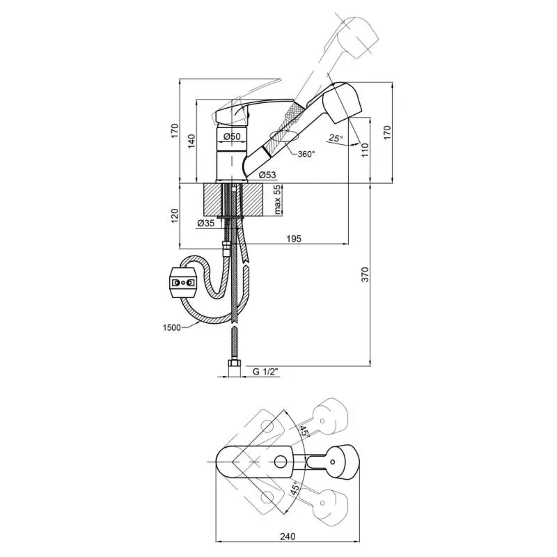 Змішувач для кухні lidz mars 011 з висувним виливом (k40) ldmar011crm34859 chrome