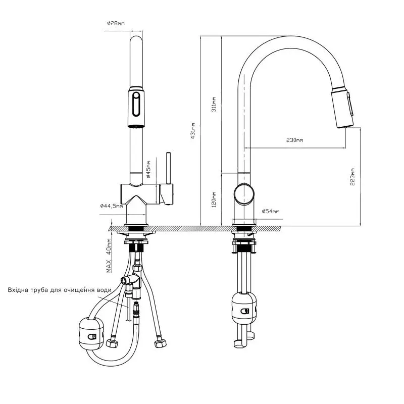 Змішувач для кухні qtap rozcesti з висувним виливом з підключенням для питної води qtroz366crm45938