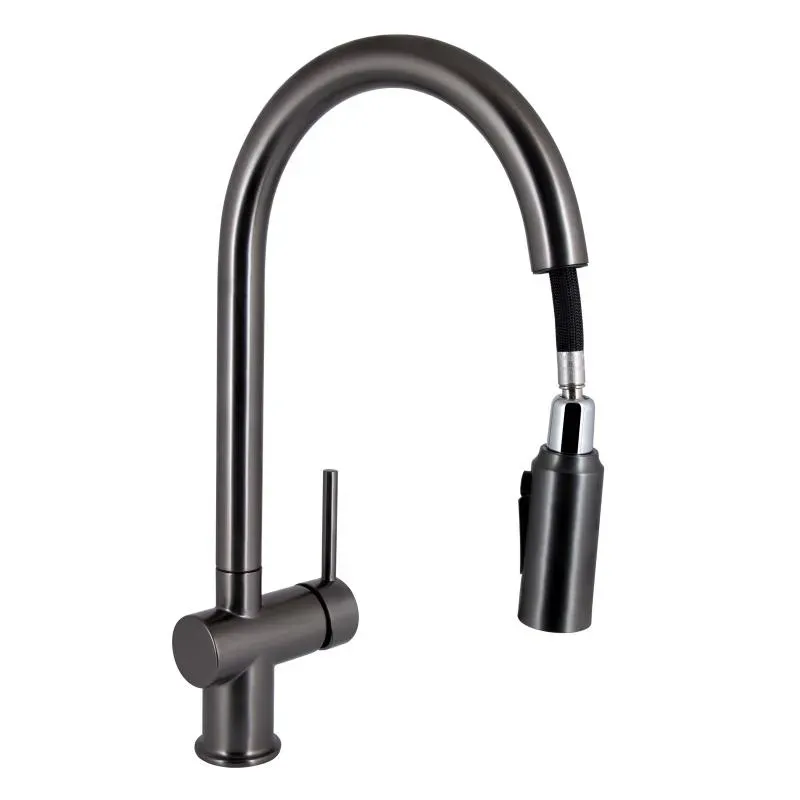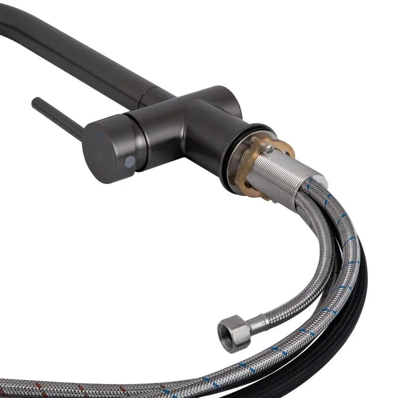 Змішувач для кухні Qtap Rozcesti QTROZ366GMB45939 у стильному кольорі збройна сталь – це ідеальне поєднання функціональності та дизайну. Висувний вилив дозволяє легко та зручно наповнювати великі ємності та очищати важкодоступні ділянки. Підключення для питної води забезпечує зручний доступ до чистої води, не потребуючи додаткового крана. Покриття захищає змішувач від корозії та механічних пошкоджень, забезпечуючи його довговічність та привабливий зовнішній вигляд.