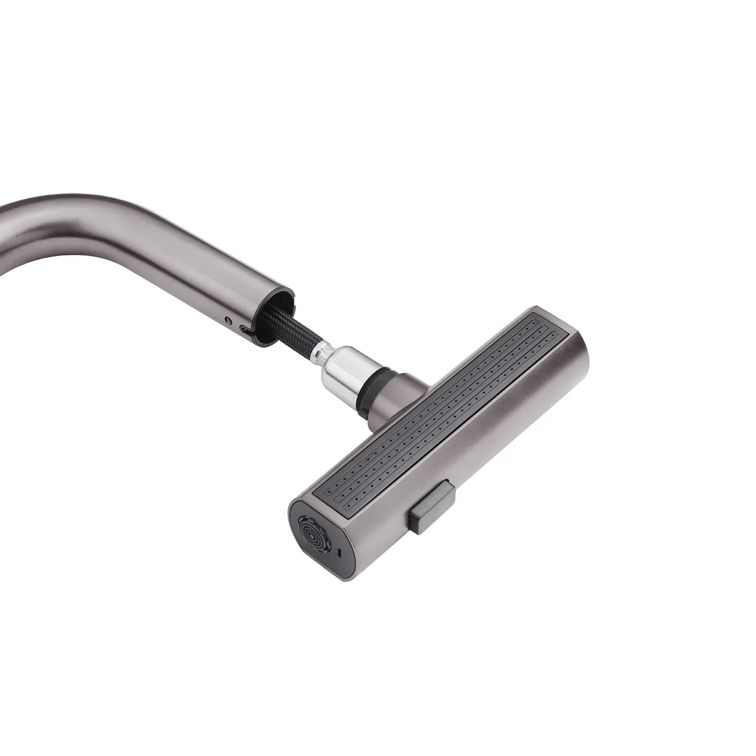 Він пропонує три режими подачі води, вигадані для різних завдань. Режим "водоспад" забезпечує м'який потік води, ідеальний для миття фруктів та овочів. Режим "потік" підходить для щоденного прибирання та миття рук, забезпечуючи рівномірний потік води. Режим "розпилення" пропонує високий та потужний тиск води для швидкого видалення мийного засобу або забруднень. Перемикання між цими режимами відбувається зручним способом: для режиму розпилення достатньо затиснути кнопку на лійці, а для "водоспаду" - повернути лійку на 90 градусів.