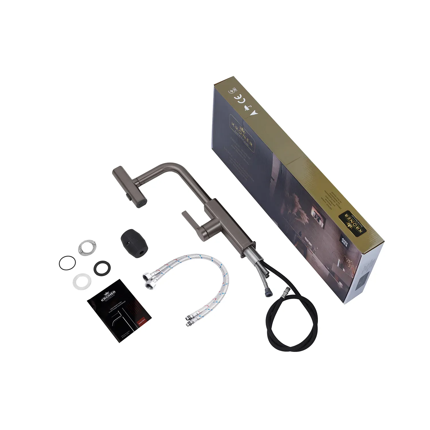 Змішувач для кухні Kroner KRP Edelstahl Klassisch - PVD03918 є мультифункціональним рішенням, що ідеально підходить для вашої кухні, поєднуючи в собі функціональність і стиль. Виготовлений із високоякісної харчової нержавіючої сталі SUS 304, цей змішувач гарантує надійність та довговічність.