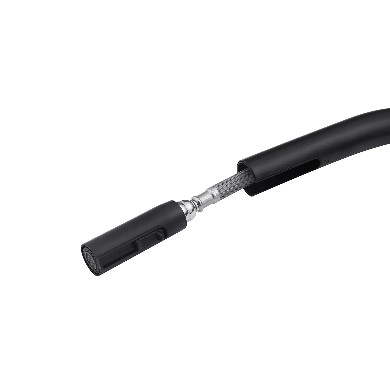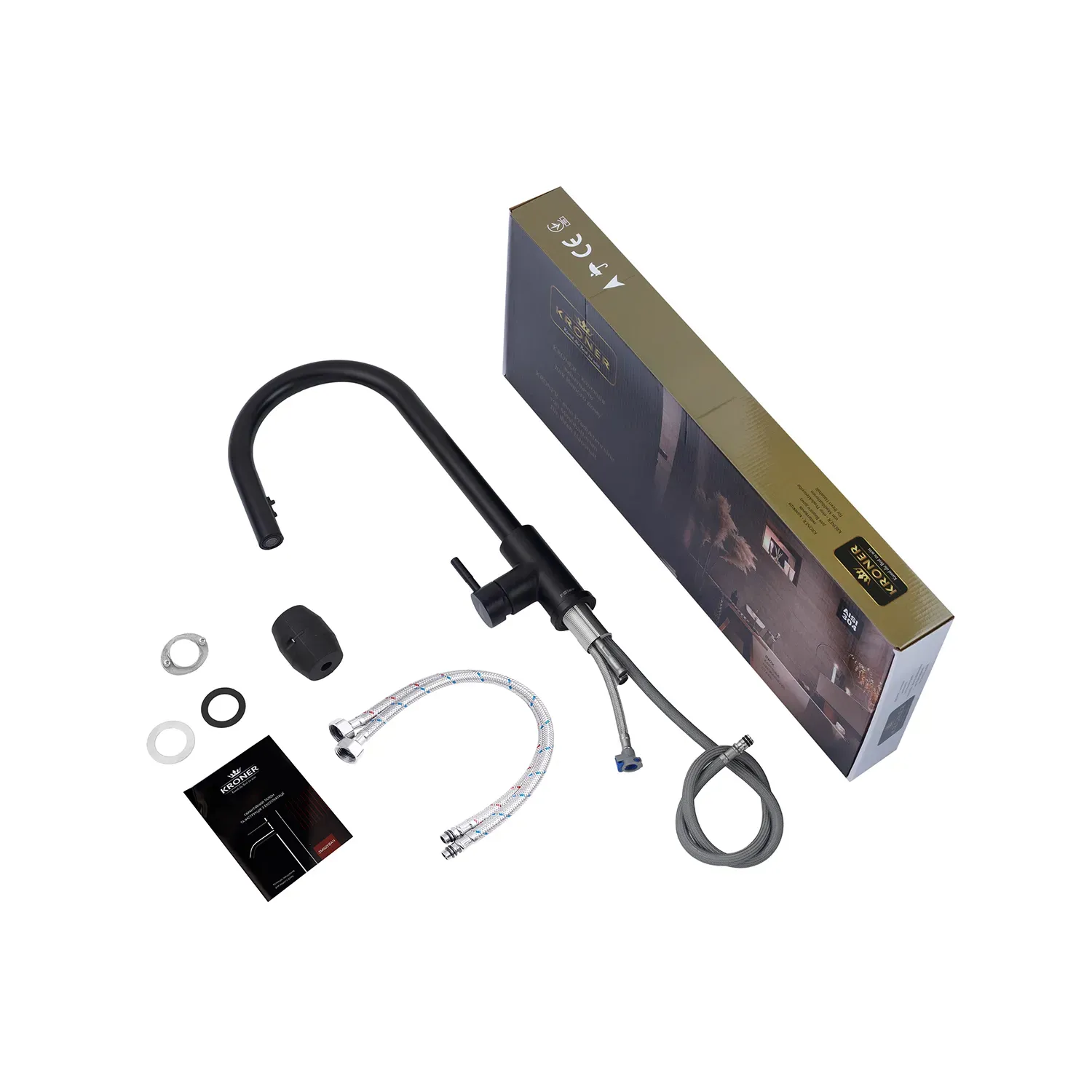 Змішувач для кухні з висувним виливом Kroner KRP Edelstahl Klassisch - ESG03915 - це вишуканий виріб з нержавіючої сталі, що поєднує в собі естетику та функціональність. Чудово підійде для сучасних кухонь. Завдяки одноважільному управлінню та врізному способу монтажу він легко інтегрується у ваш простір. Брашована поверхня та U-подібна форма виливу надають йому елегантного вигляду. Змішувач оснащений висувним/поворотним виливом, що забезпечує зручність використання. Механізм змішування з картриджем діаметром 35 мм гарантує надійність та довговічність. У комплектацію входять гнучка підводка, шланг для висувної лійки, лійка, якір та кріплення, що робить процес установки простим та зручним. Цей змішувач відповідає високим стандартам зручності та стилю на сучасній кухні.