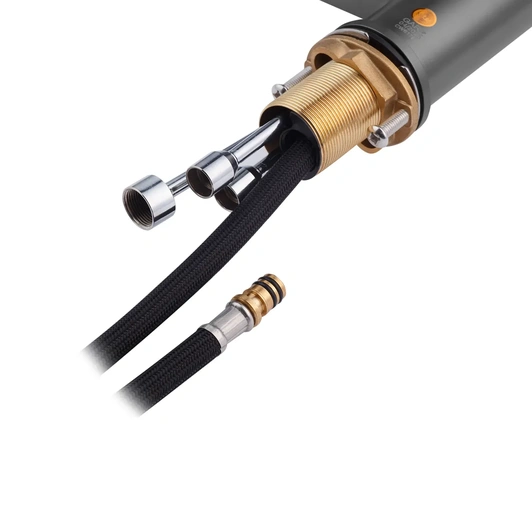 Колір змішувача – графіт, який надає вашій кухні сучасного вигляду та доповнює її стильний інтер'єр.