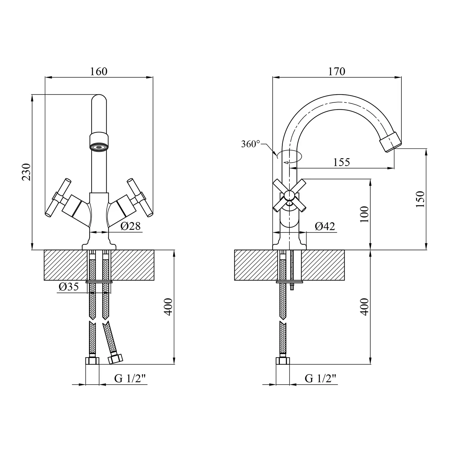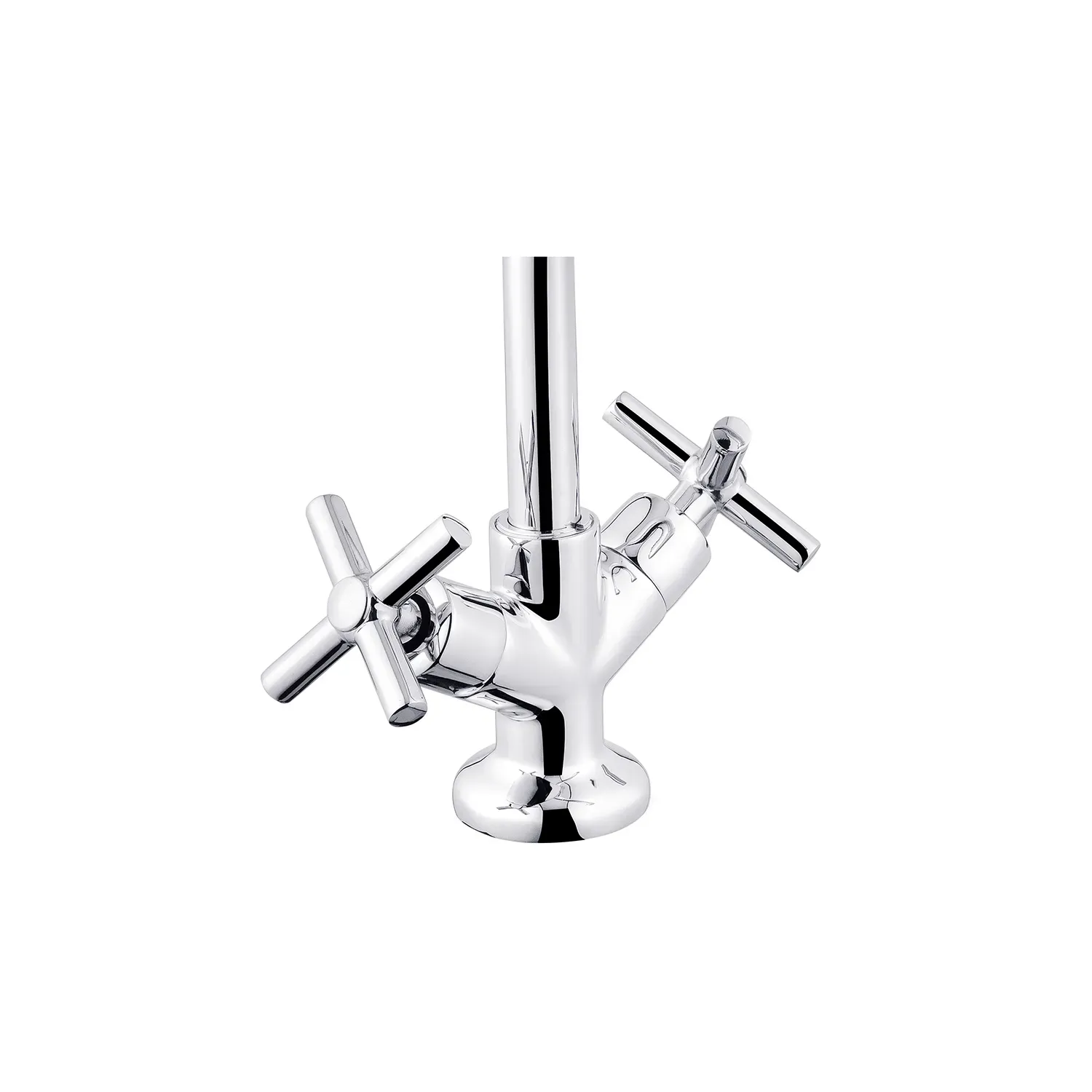 Змішувач для раковини Kroner KRM Aller - C010 - стильний та практичний вибір для вашої ванної кімнати. Виготовлений з високоякісного силуміну, він гарантує довговічність та надійність. Привабливий глянцевий хромований колір додає йому елегантності та сучасного вигляду. Механізм змішування кран-букса забезпечує плавне регулювання температури води. Врізний спосіб монтажу дозволяє зберігати естетичний вигляд раковини, а глянцева поверхня додає блиску і гарантує легку очистку. Змішувач Kroner - це стильний акцент, що надасть вашому дизайну особливої гармонії і розкоші.