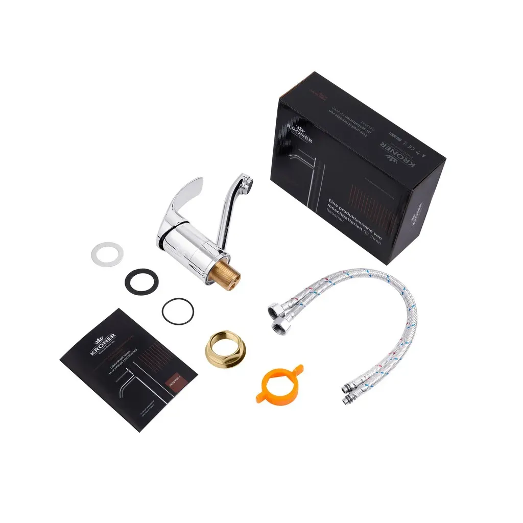 Змішувач для раковини Kroner KRP Konstante - C011 - стильний та практичний вибір для вашої ванної кімнати. Виготовлений з високоякісної латуні він гарантує довговічність та надійність. Привабливий хромований колір додає йому елегантності та сучасного вигляду. Картриджний механізм змішування забезпечує плавне регулювання температури води. Врізний спосіб монтажу дозволяє зберігати естетичний вигляд раковини, а глянцева поверхня додає блиску і гарантує легку очистку. Змішувач Kroner - це стильний акцент, що надасть вашому дизайну особливої гармонії і розкоші.