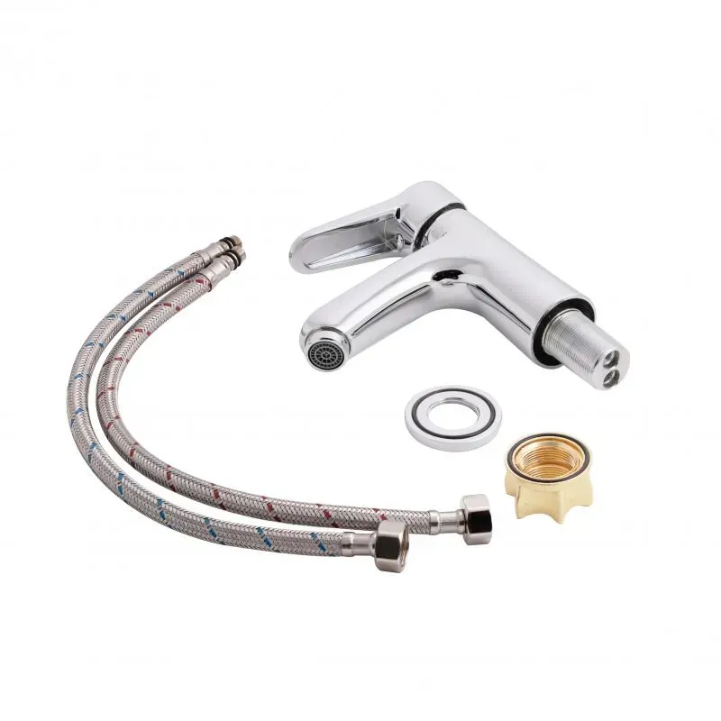 Змішувач для раковини Lidz (CRM) 14 34 001F виготовлений з цинку. Глянцева хромована поверхня надає змішувачу оригінальний зовнішній вигляд. Інтенсивність водяного потоку і температура регулюються за допомогою переміщення важеля. Підключення води відбувається через гнучкі шланги з діаметром 1/2 ", які входять у комплект поставки.