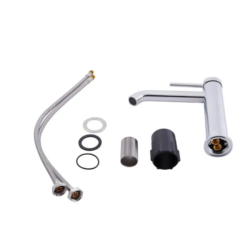 Змішувач для раковини Qtap Robin 1060H102C виконаний у сучасному стилі, виготовлений з високоякісної харчової латуні, яка не схильна до корозії, стійка до ударів та появи тріщин. Глянцеве хромоване покриття не тільки підвищує довговічність змішувача, але й надає оригінальному зовнішньому вигляду. Інтенсивність водного потоку та температура регулюються за допомогою переміщення важеля. Підключення води відбувається через гнучкі шланги з діаметром 1/2".