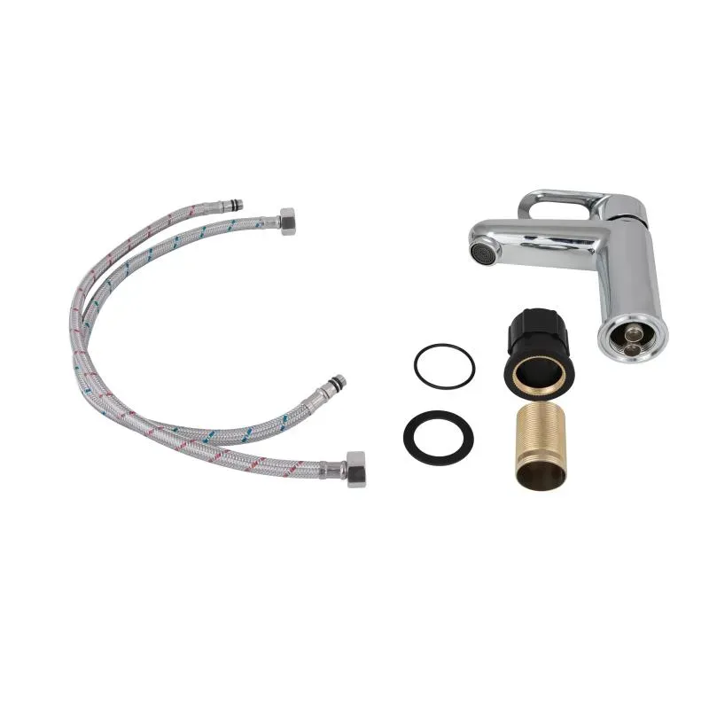 Змішувач для раковини Lidz Latwa 001 LDLAT001CRM45412 виготовлений із цинку. Глянцева хромована поверхня надає змішувачу оригінального вигляду. Інтенсивність водного потоку та температура регулюються за допомогою переміщення важеля. Підключення води відбувається через гнучкі шланги з діаметром підключення 1/2", які входять до комплекту постачання.