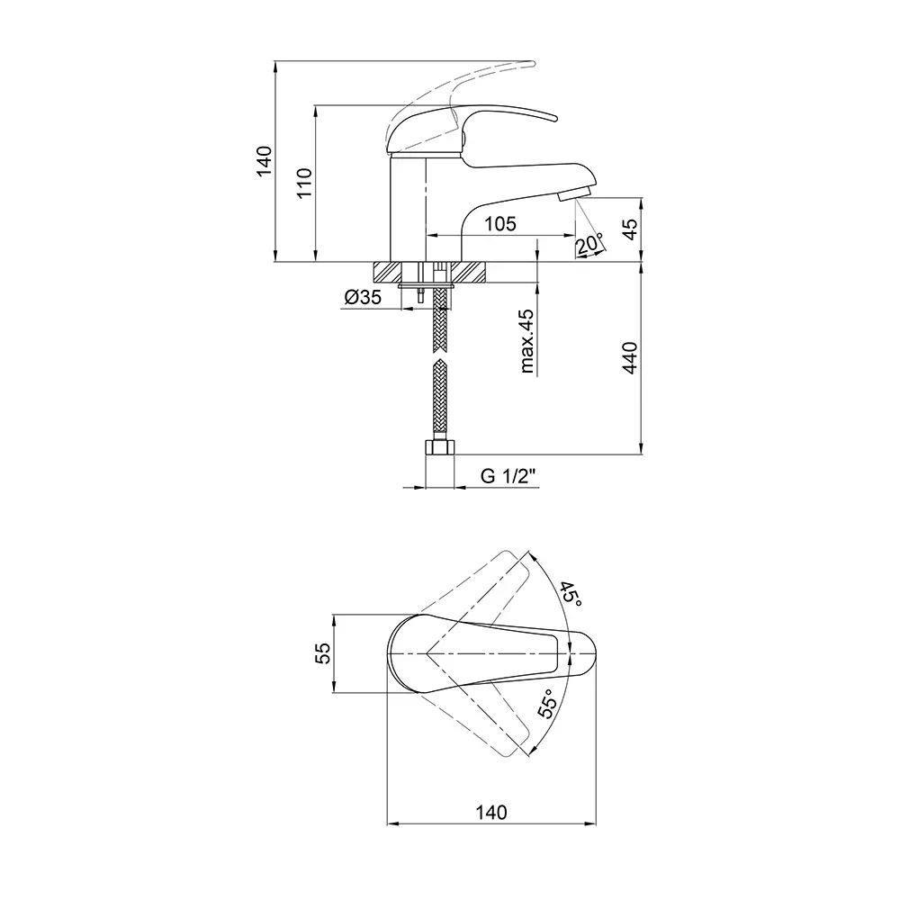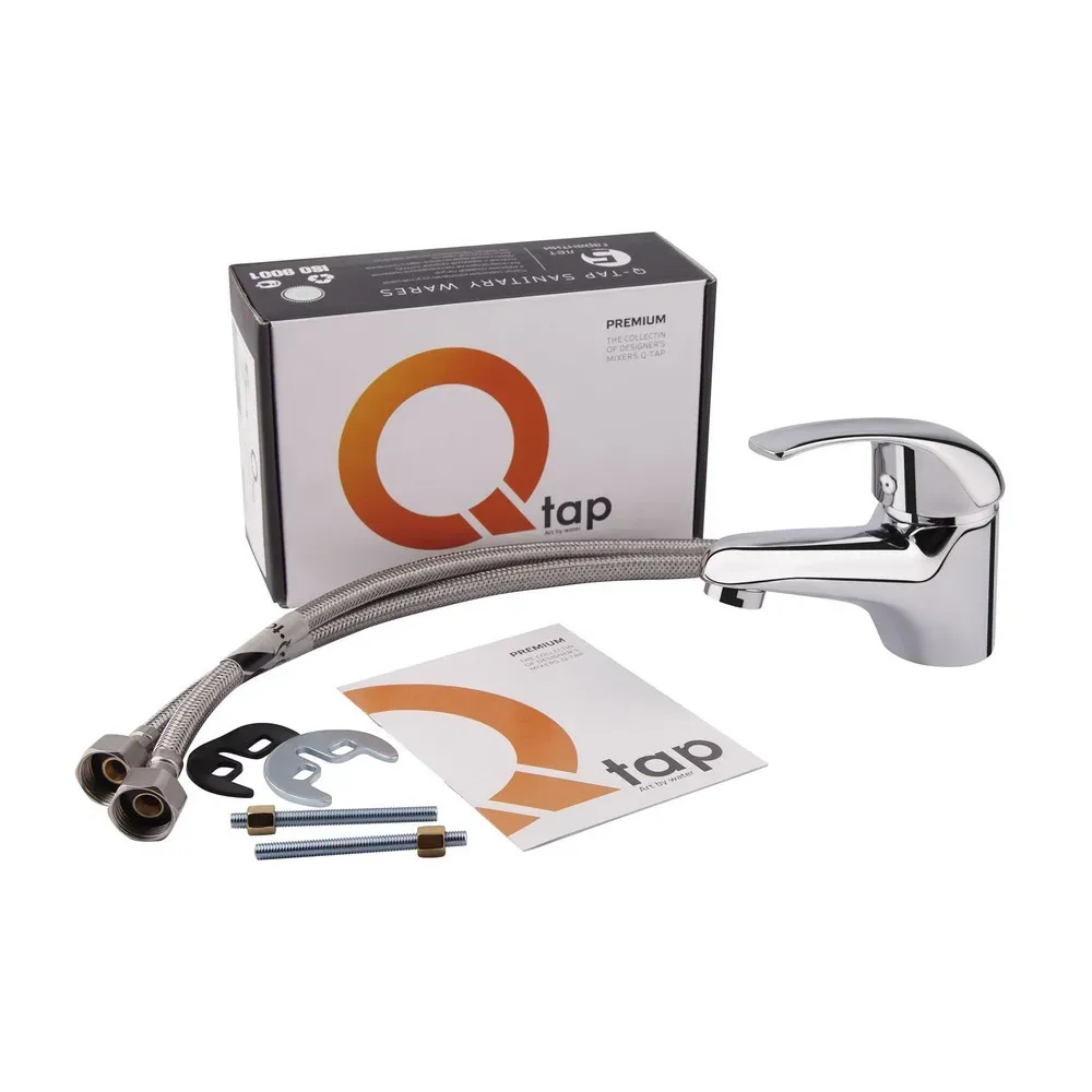Змішувач литий для умивальника Q-tap Premiere CRM 001. Латунний змішувач хорошої якості. Покриття хром. Зручний, невеликий змішувач. Ручка джойстик, картридж 40мм. Кріплення (шпилька). Шланги підключення 40см.