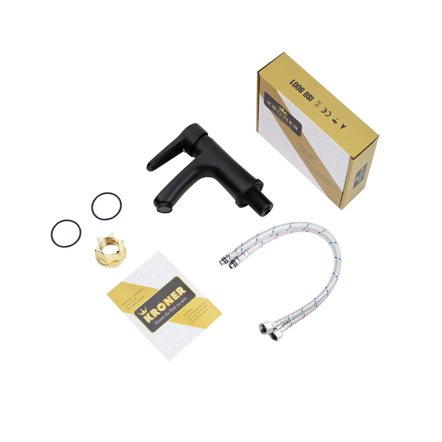 Змішувач для раковини Kroner KRM Elbe - SCH010 - стильний та практичний вибір для вашої ванної кімнати. Виготовлений з високоякісного силуміну, він гарантує довговічність та надійність. Привабливий матовий чорний колір додає йому елегантності та сучасного вигляду. Картриджний механізм змішування забезпечує плавне регулювання температури води. Врізний спосіб монтажу дозволяє зберігати естетичний вигляд раковини. Змішувач Kroner - це стильний акцент, що надасть вашому дизайну особливої гармонії і розкоші.