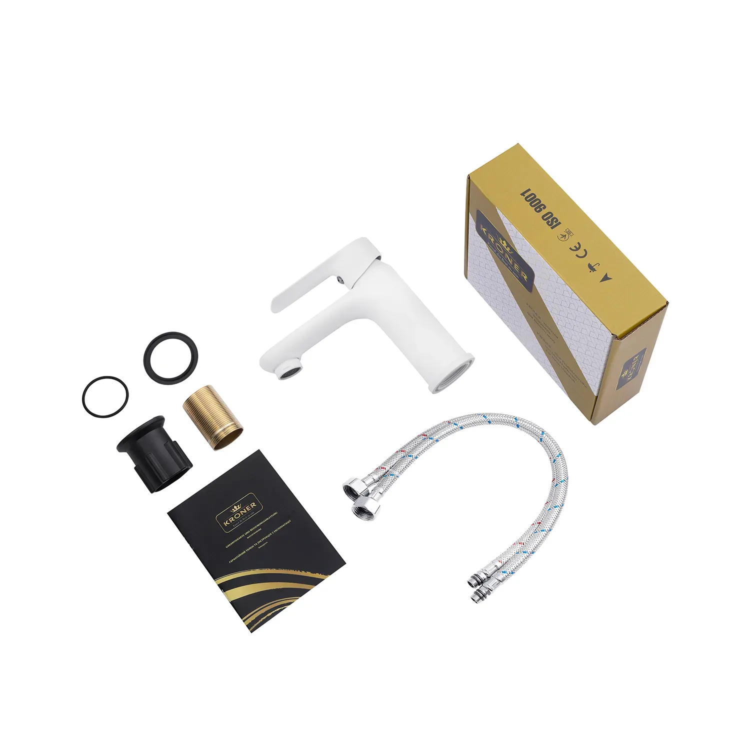 Змішувач для раковини Kroner KRM Fulda - W010 - стильний та практичний вибір для вашої ванної кімнати. Виготовлений з високоякісного силуміну, він гарантує довговічність та надійність. Привабливий матовий білий колір додає йому елегантності та сучасного вигляду. Картриджний механізм змішування забезпечує плавне регулювання температури води. Врізний спосіб монтажу дозволяє зберігати естетичний вигляд раковини. Змішувач Kroner - це стильний акцент, що надасть вашому дизайну особливої гармонії і розкоші.