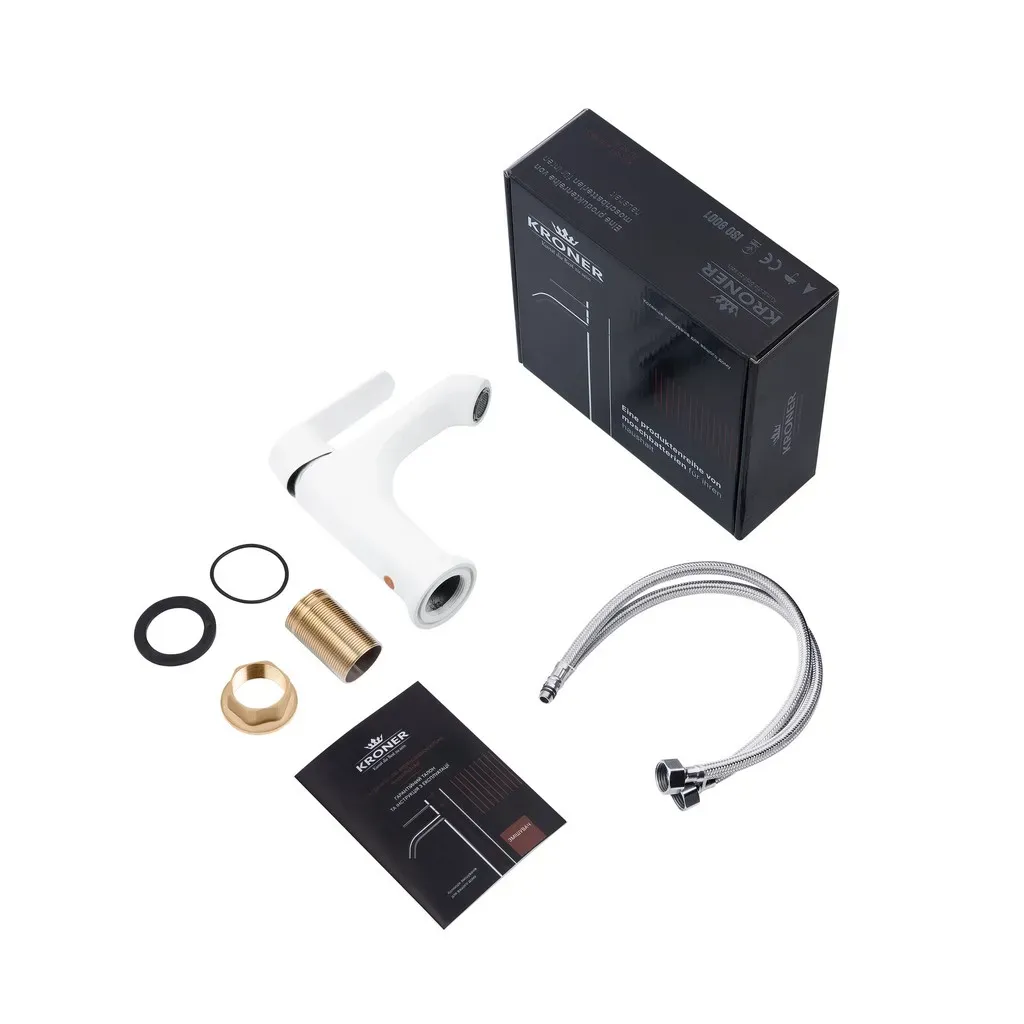 Змішувач для раковини Kroner KRP Armada - W010 - стильний та практичний вибір для вашої ванної кімнати. Виготовлений з високоякісної латуні, він гарантує довговічність та надійність. Привабливий хромовано-білий колір додає йому елегантності та сучасного вигляду. Картриджний механізм змішування забезпечує плавне регулювання температури води. Врізний спосіб монтажу дозволяє зберігати естетичний вигляд раковини, а глянцево-матова поверхня додає вишуканості і гарантує легку очистку. Змішувач Kroner - це стильний акцент, що надасть вашому дизайну особливої гармонії і розкоші.