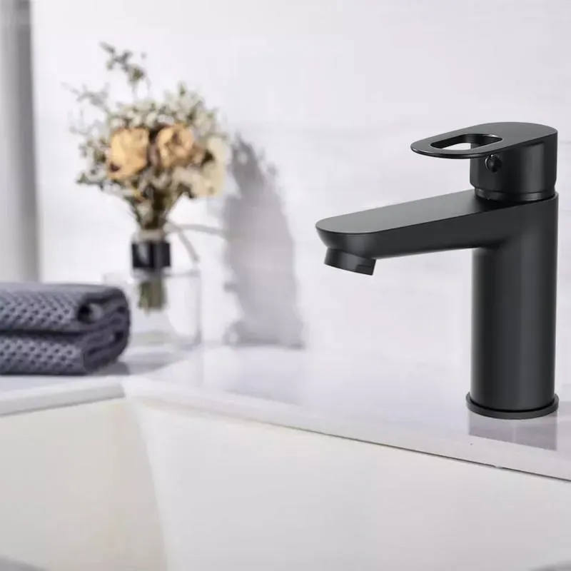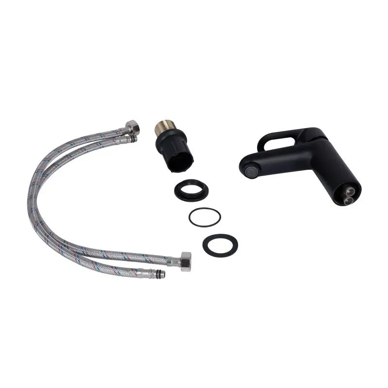 Змішувач для раковини Lidz Latwa 001 LDLAT001BLA45418 виготовлений із цинку в чорному кольорі з матовою поверхнею. Інтенсивність водного потоку та температура регулюються за допомогою переміщення важеля. Виріб кріпиться врізним способом за допомогою гнучкого підведення та кріплень, які комплектуються разом з ним в одне вантажне місце. Інтенсивність водного потоку та температура регулюються за допомогою переміщення важеля.