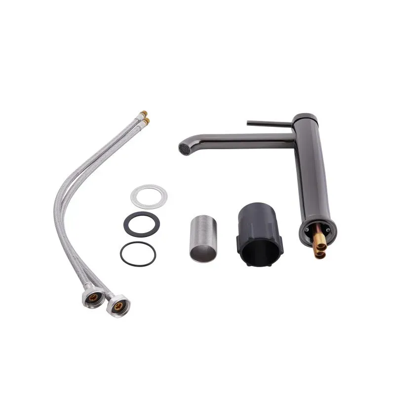 Змішувач для раковини Qtap Robin 1060H102K виконаний у сучасному стилі, виготовлений з високоякісної харчової латуні, яка не схильна до корозії, стійка до ударів та появи тріщин. Глянцеве сіре покриття не тільки підвищує довговічність змішувача, але й надає оригінальному зовнішньому вигляду. Інтенсивність водного потоку та температура регулюються за допомогою переміщення важеля. Підключення води відбувається через гнучкі шланги з діаметром 1/2".
