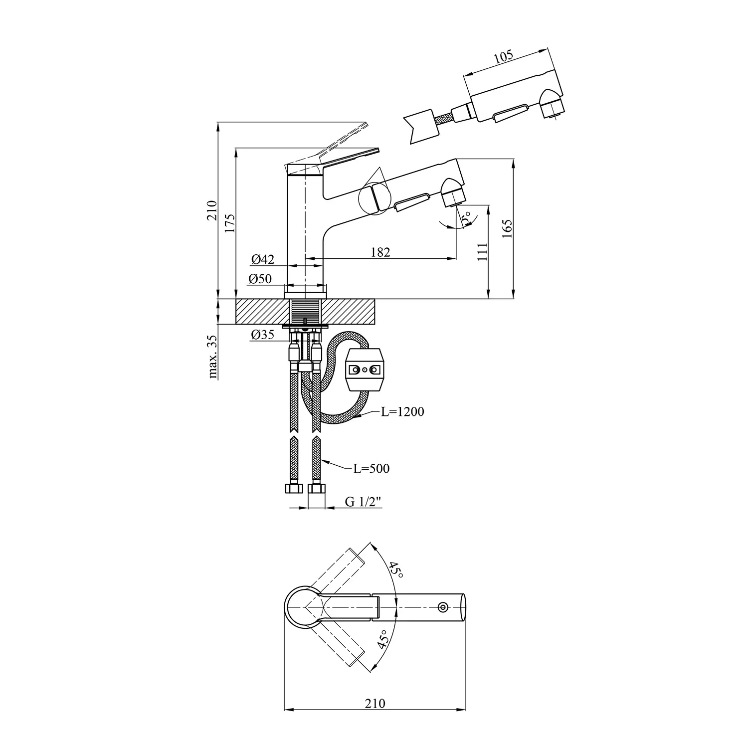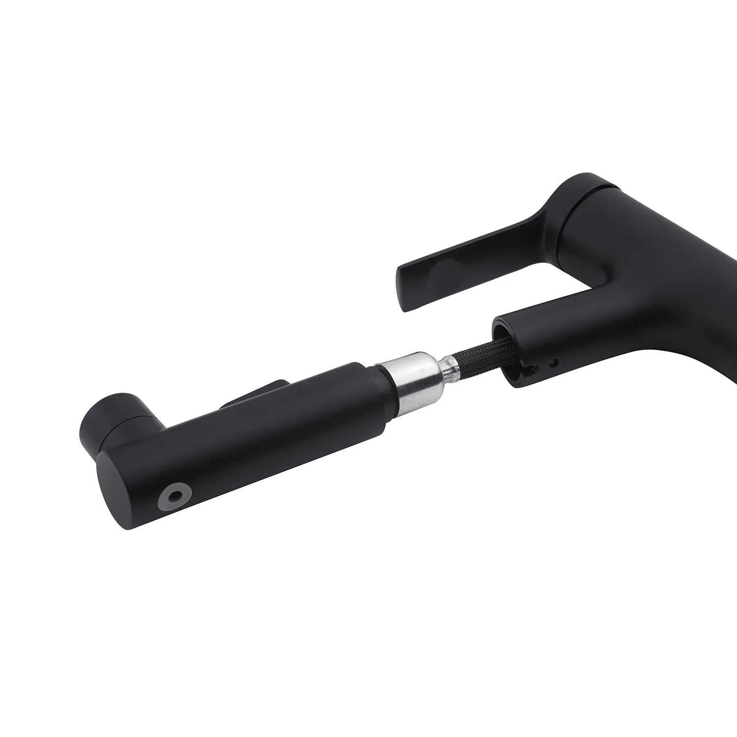 З його чорним матовим кольором цей змішувач додає елегантності вашій ванній кімнаті. Висувний поворотний вилив дозволяє легко маніпулювати напрямом води, роблячи його зручним у використанні.